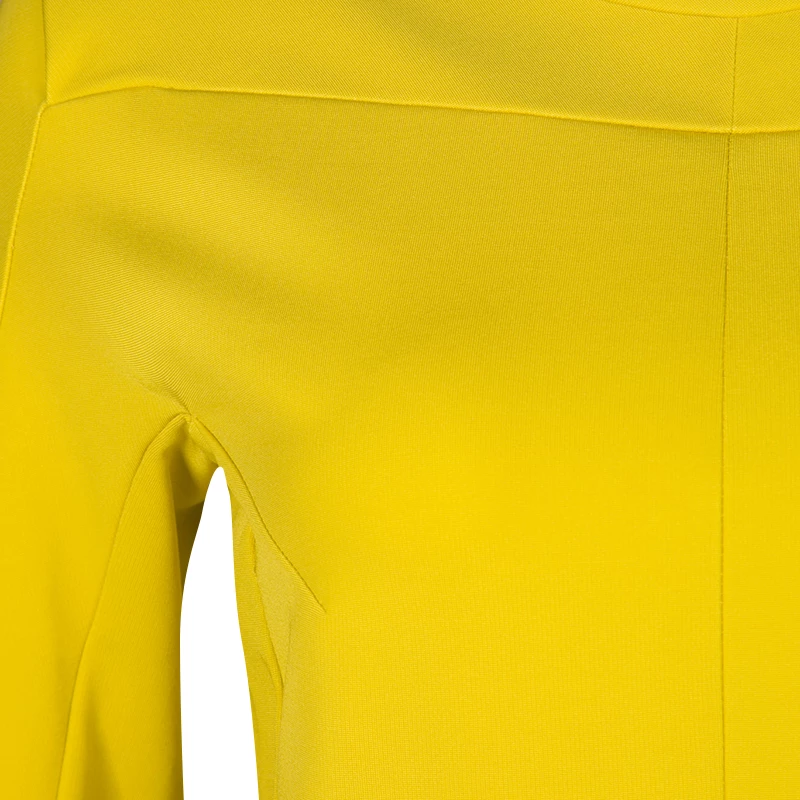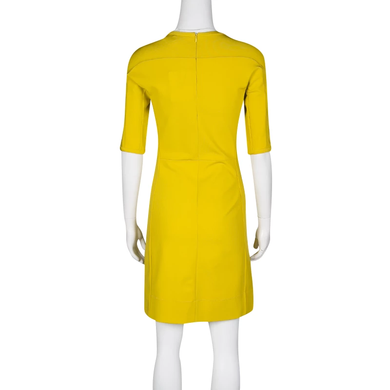 This Diane Von Furstenberg sheath dress is a kind of dress that makes you feel pretty and feminine, always. The outfit, which is perfect from all angles, features an acid yellow hue that makes your eyes pop out. Falling to knee-length, this well-structured piece is completed with a round neckline and short sleeves. Wear this with vibrant pumps for a breezy look.