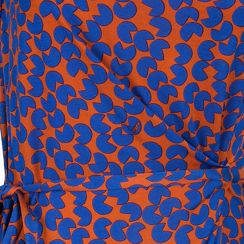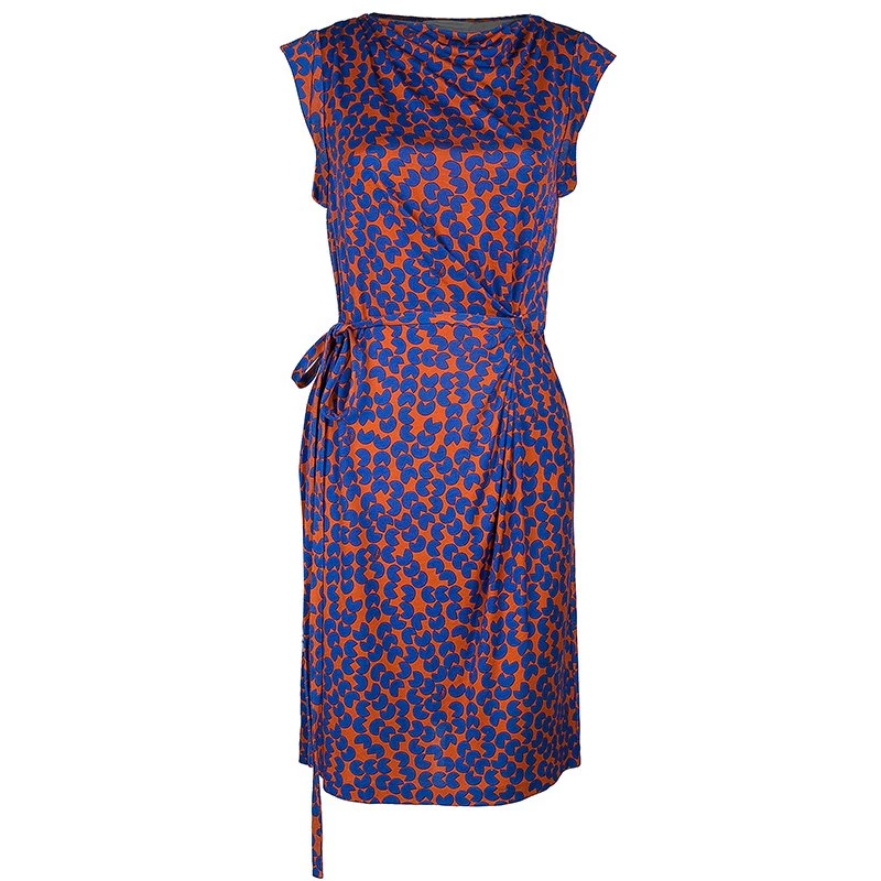 This Amberlin printed dress from the stunning collections of Diane von Furstenberg looks gorgeous. The bright orange and blue print makes the dress stand out and belt fastening at the waist accentuates the overall relaxed fit. Wear this with pointed toe pumps for a head-turner look!