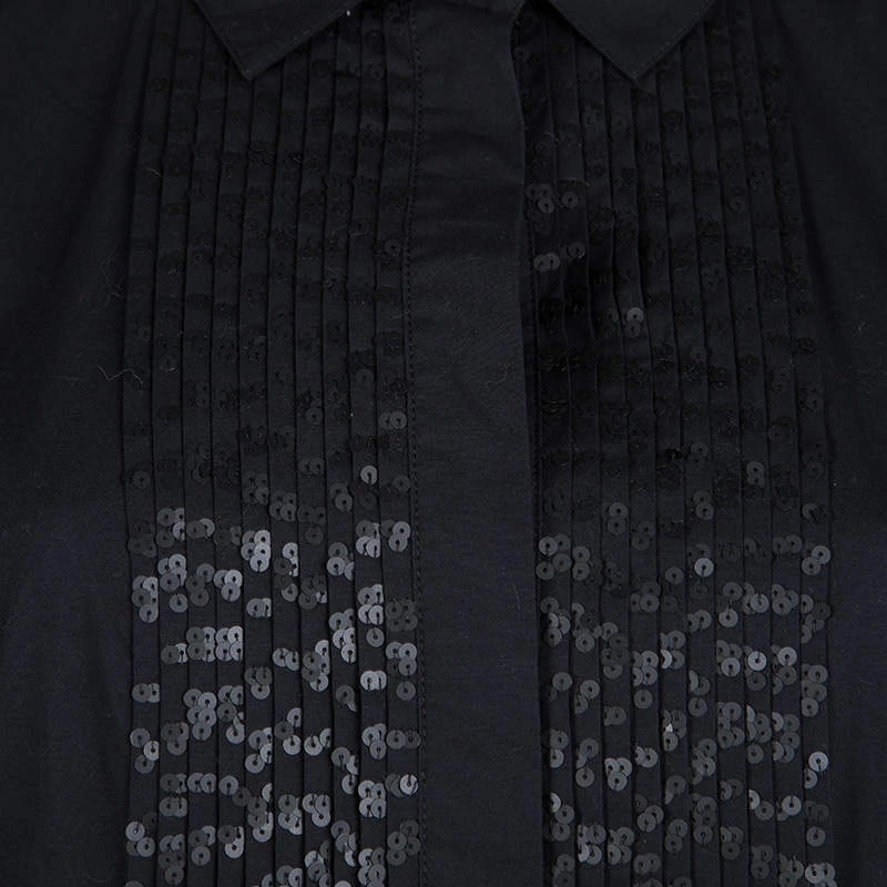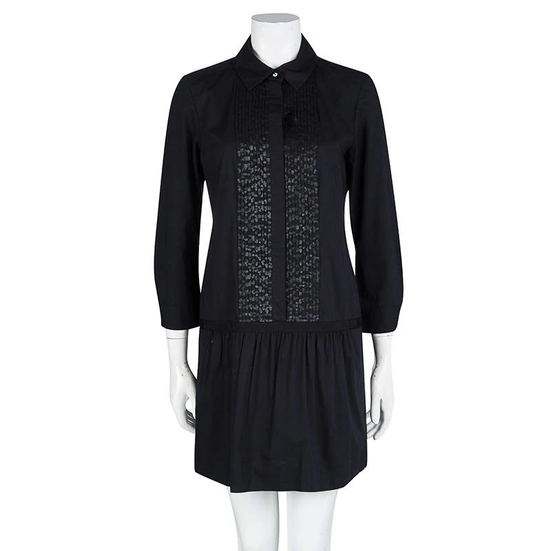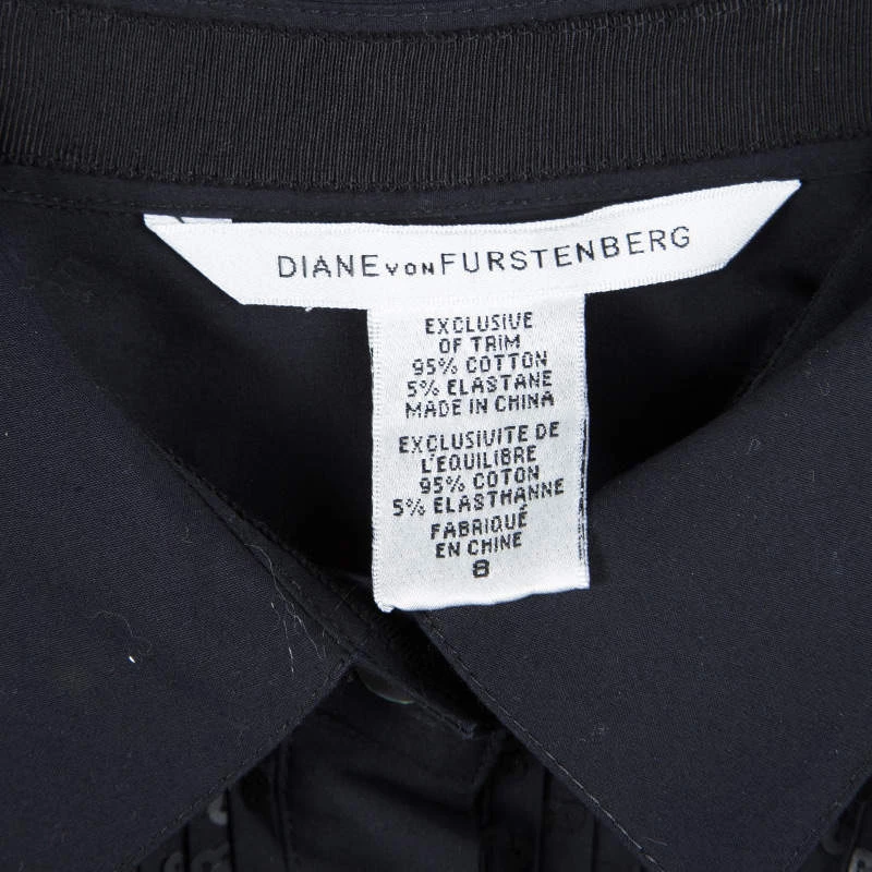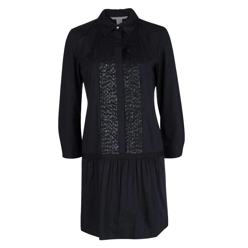 This Diane Von Furstenberg dress is made from cotton and styled to help you look your best. It flaunts a black hue with a collar and sequin-adorned pintuck details on the front. The dress will look great with high heels and sneakers too.