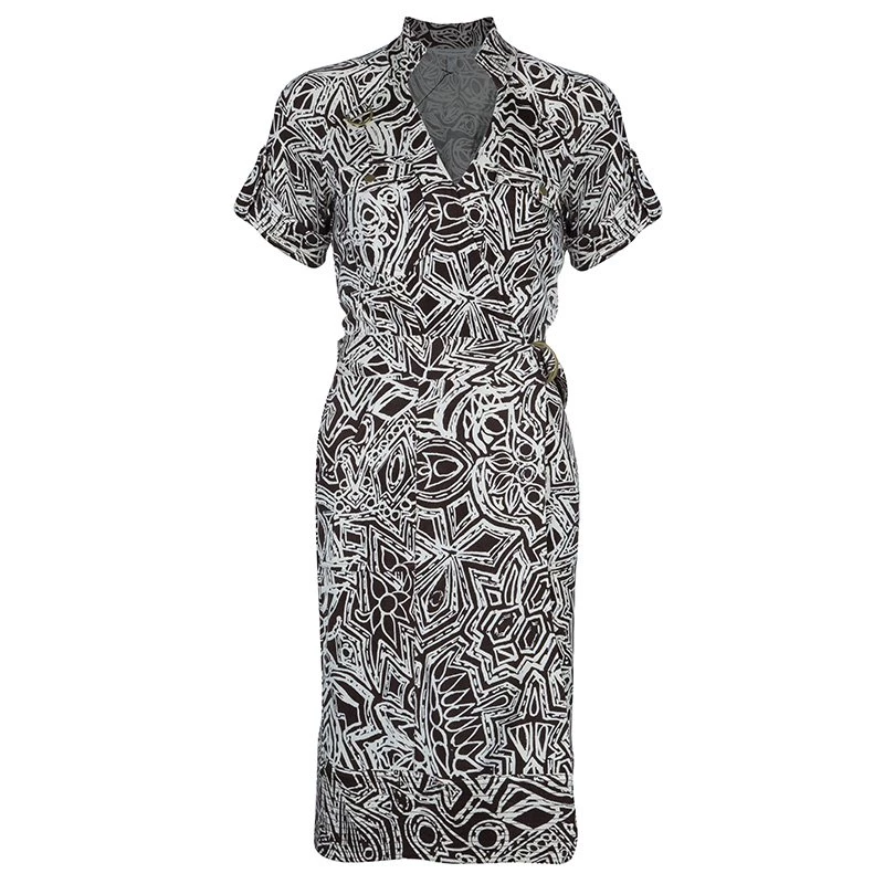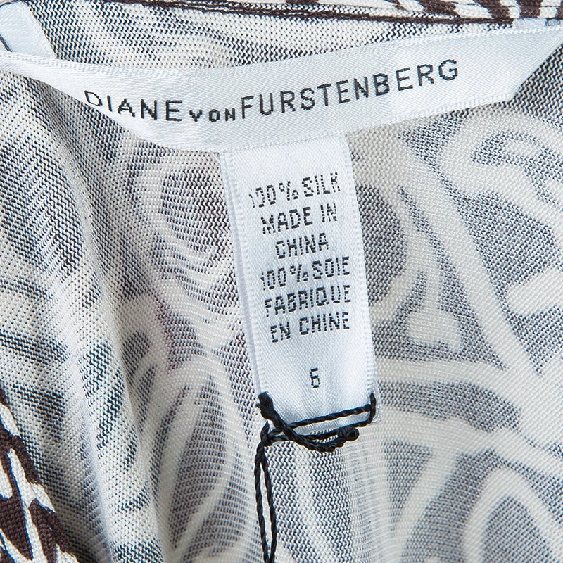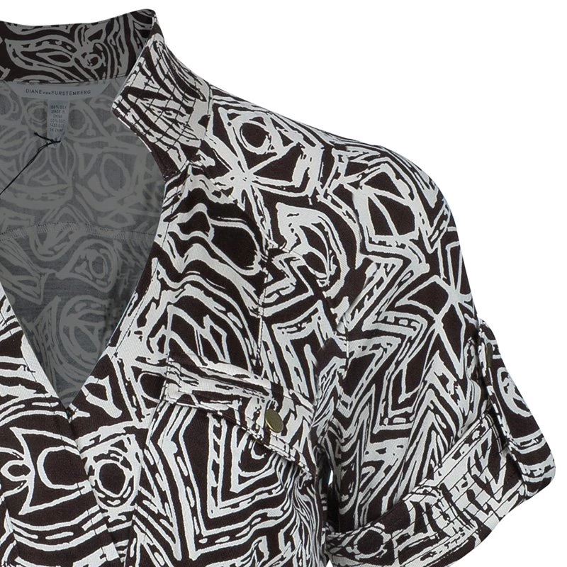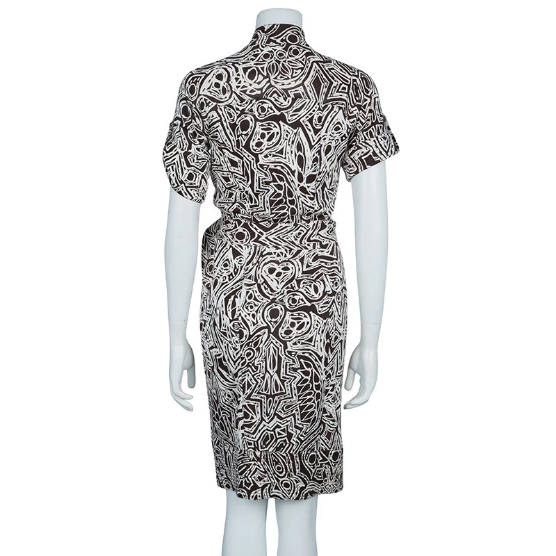 Dress up classy and fabulous like never before in this Anoush printed dress from Diane Von Fustenberg. Crafted from purest form of silk, it comes with a cream print over a brown base. The dress features wrapped details on the front with V-neckline, back standing collars and short loose sleeves.