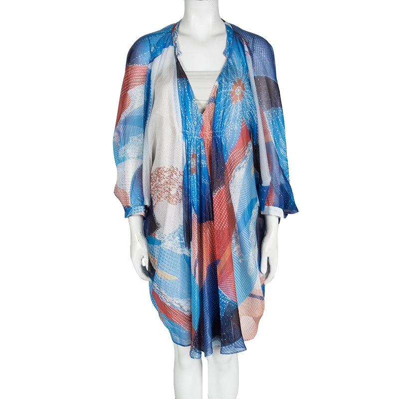 Easy to carry and just perfect for the season, this Diane Von Furstenberg Kaftan dress will be a wardrobe favorite. It has been made from a silk blend and styled in a silhouette that is trendy and fuss-free. It flaunts batik land print all over and a V neck. Wear this creation with beige sandals and look stylish.