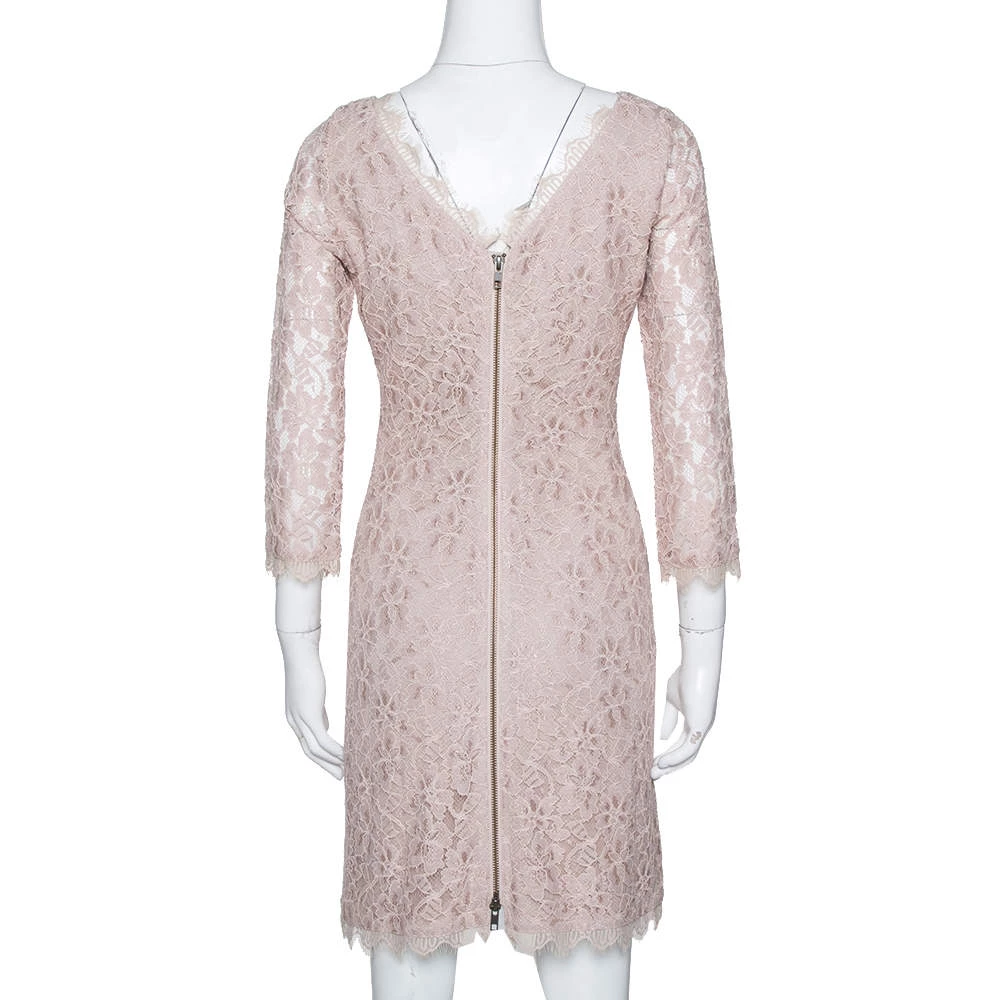 This creation from Diane von Furstenberg is so perfect it will not only give you a fabulous fit but will also lift your spirits because wearing good clothes can give one a pleasant feeling. In a lace design, this long sleeve dress flaunts a beautiful beige shade. Assemble the whole look with statement jewelry and simple sandals.
