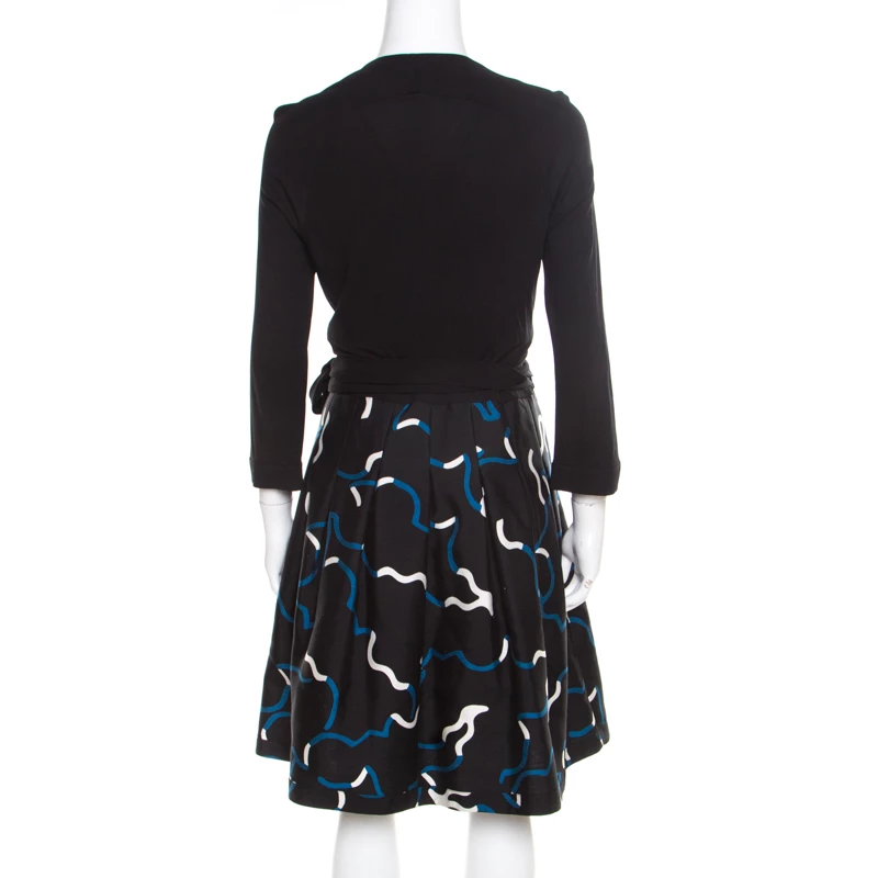 Make a style statement with this lovely dress from the house of Diane Von Furstenberg. Made from blended fabric, it is second to none. This wrap dress has a lovely printed skirt and quarter sleeves.