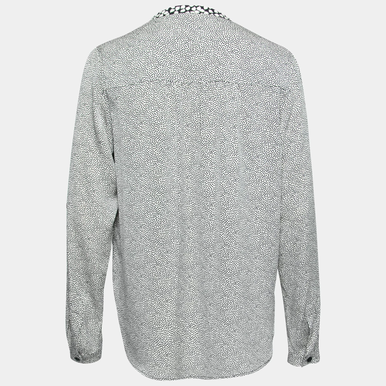 The usage of black and white shade lends this Diane Von Furstenberg blouse a luxe contrast. Created from a blend of quality materials, it is highlighted with chic print detailing and embodies a relaxed fit. Long sleeves with a buttoned cuff and front button closure give it a fine finishing.