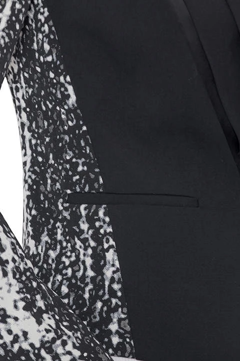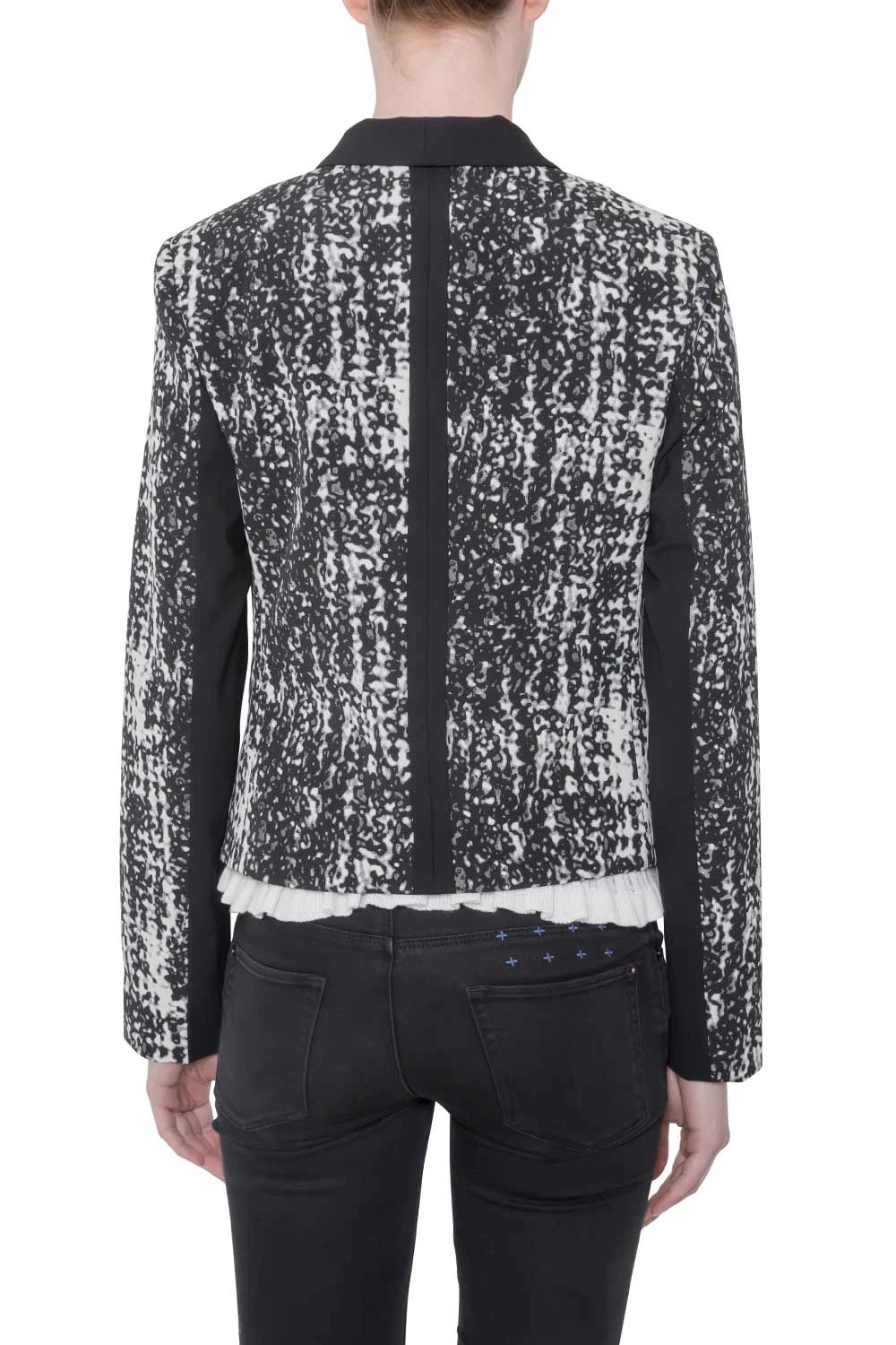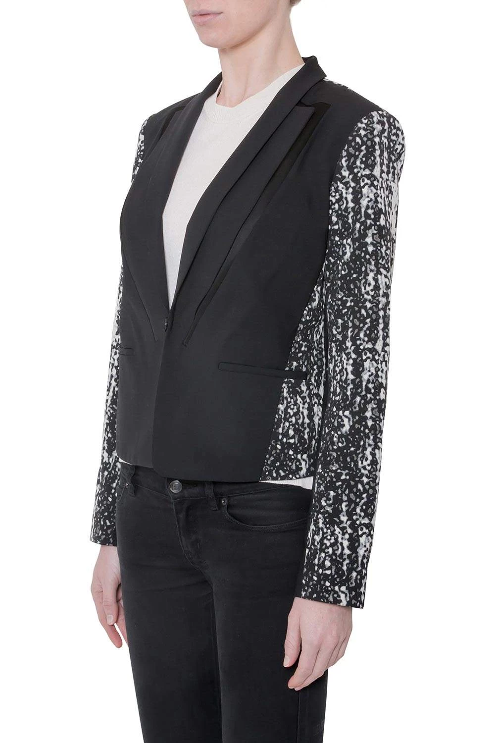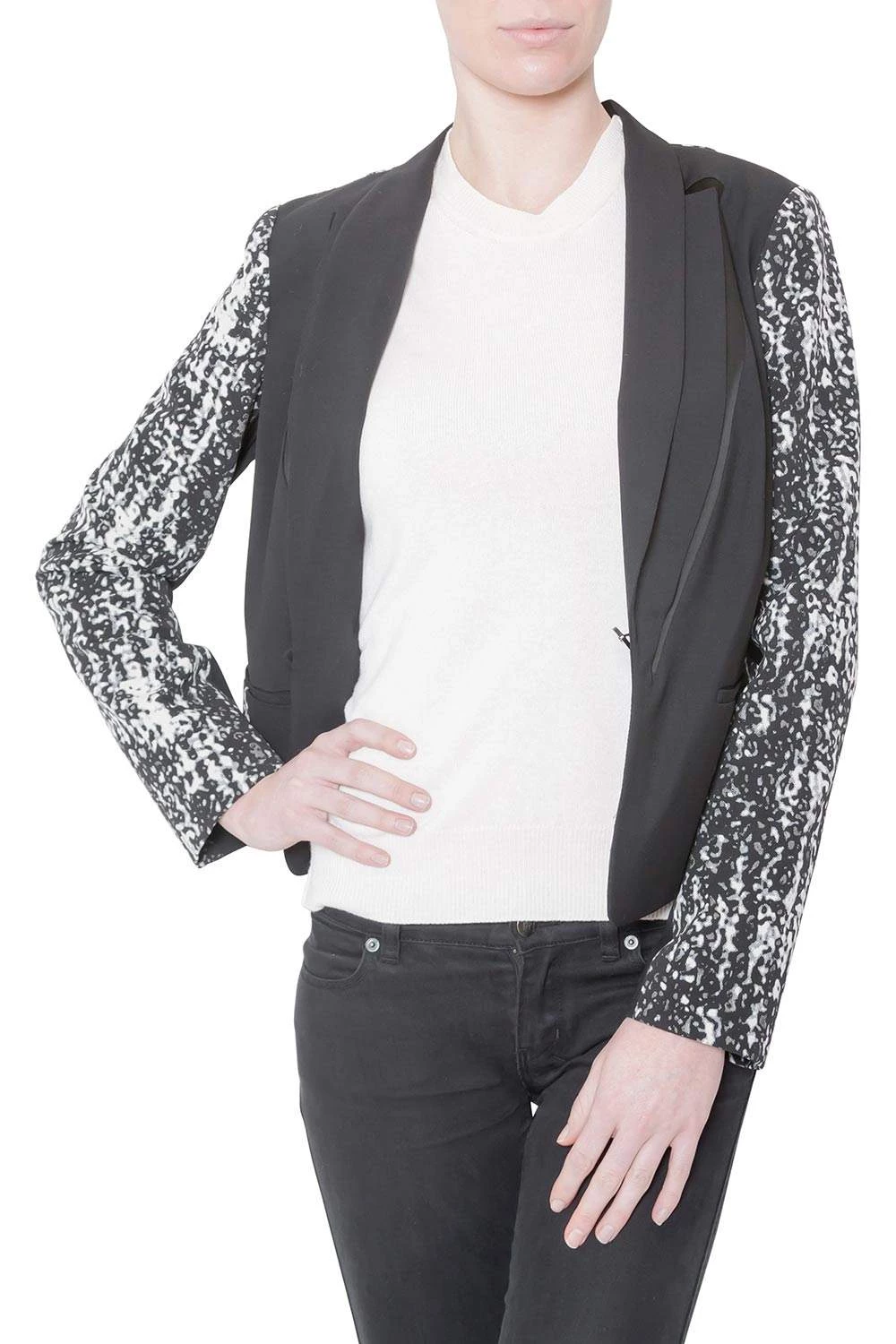 The creation by Diane von Furstenberg makes a stunning statement. With the solid black color in the front, it features an enticing design at the back. This Olena jacket comes with two external pockets and button front closure. It is surely a prize to own.