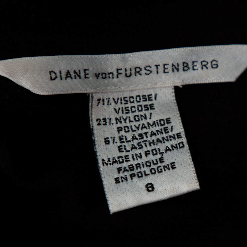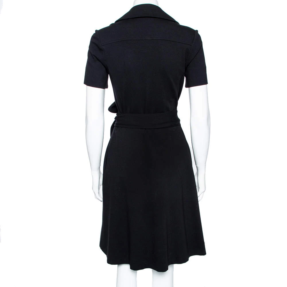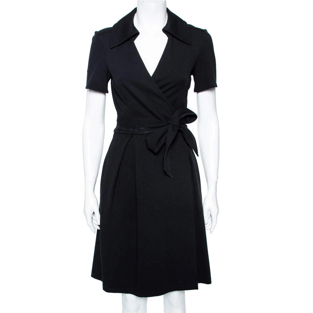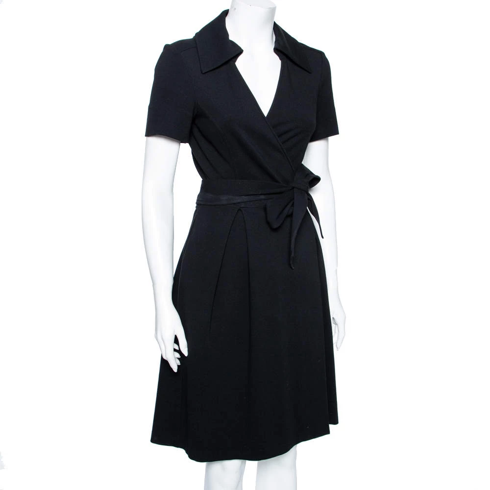 The fashion label house Diane von Furstenberg offers diversity and exclusivity through its creations. This dress has been tailored to perfection with a front wrap tie. It showcases a classic, vintage silhouette with collars and short sleeves, making this dress remain eternally fashionable.