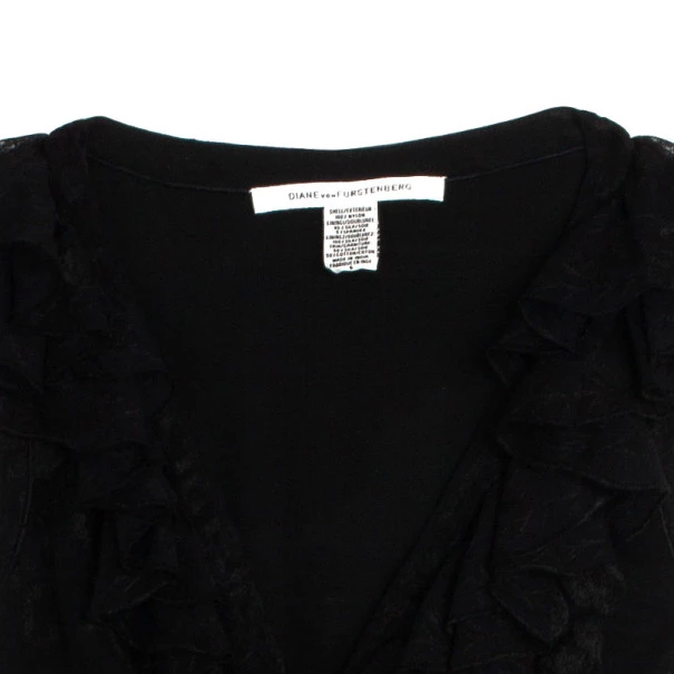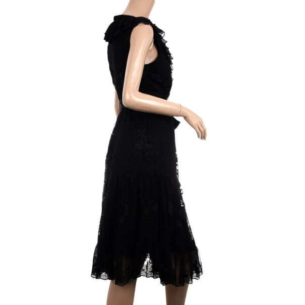 A fabulous little black dress by Diane Von Furstenberg, this dendermonde dress is made from tulle. From the 2008 runway collection, this dress features embroidery of rose patterns all over with ruffle detailing on trim and a black ribbon. The trim is lined with 50% cotton and 50% silk.Original Retail Price: US $795