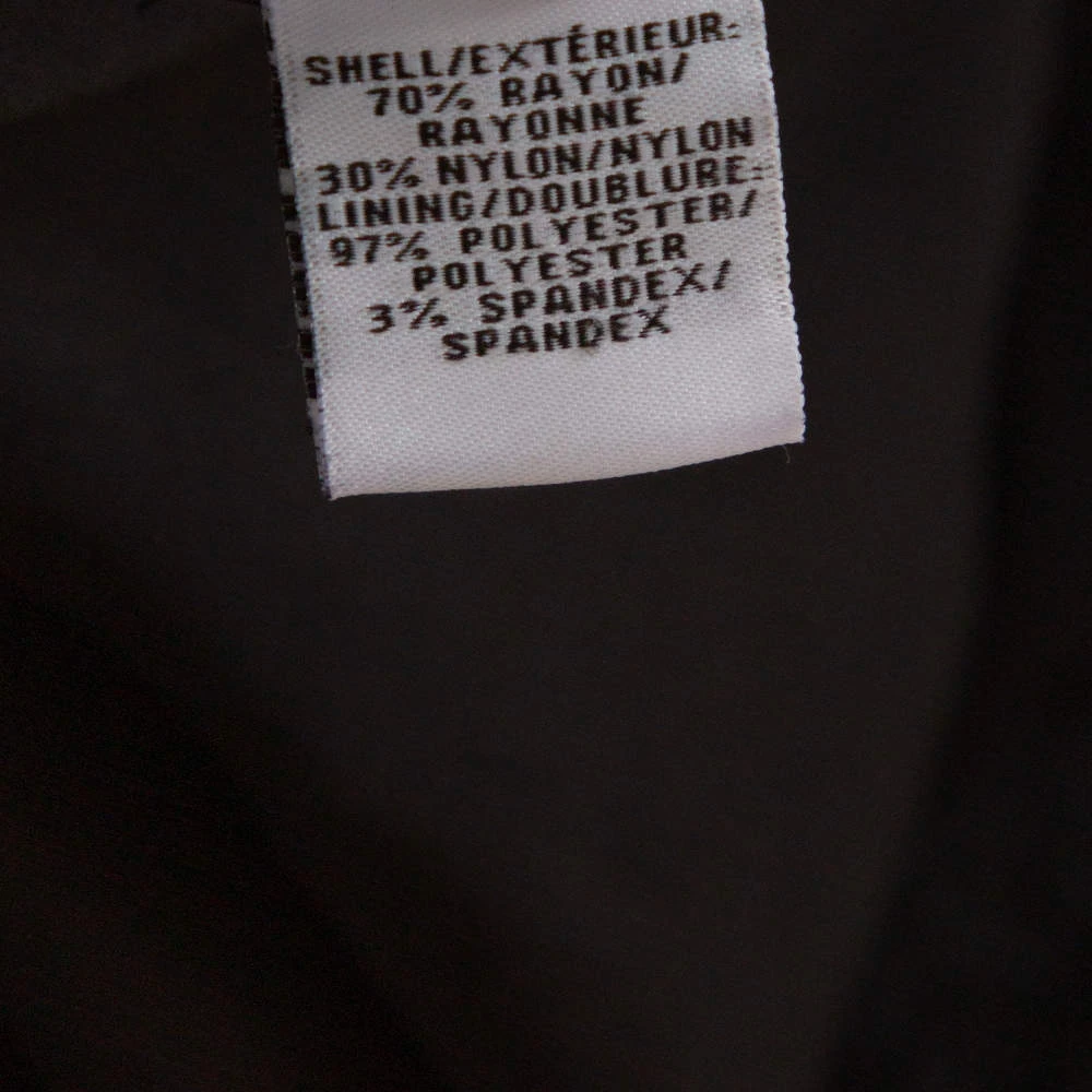 - Composition: Shell : 70% Rayon, 30% Nylon ; Lining : 97% Polyester, 3% Spandex
