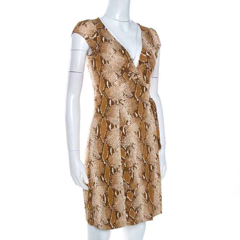 Best known for the wrap dress design, Diane von Furstenberg is a name beloved by many. This shirt dress in brown is designed to give you a flattering silhouette. It comes with snake prints and a tie.