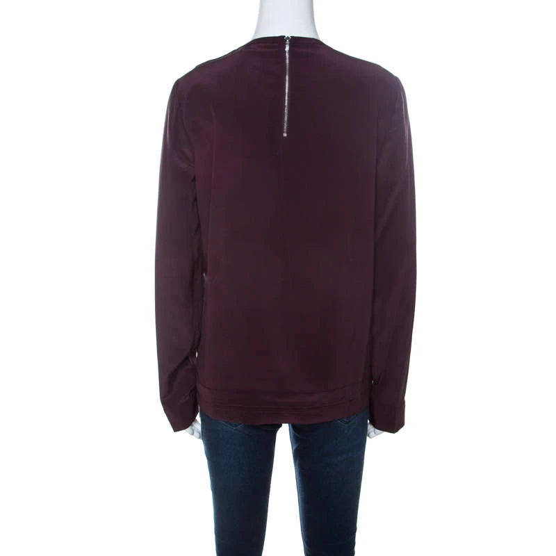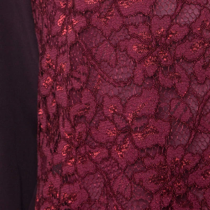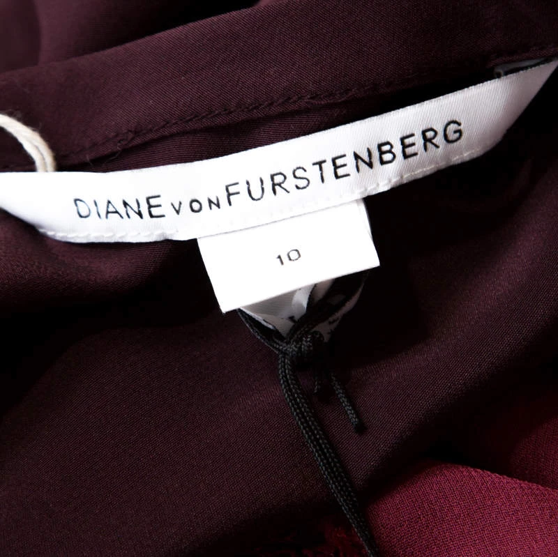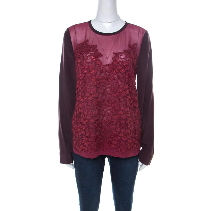 The house of Diane Von Furstenberg brings to you the best of the modern trends with this impressive blouse. This timeless burgundy piece is rich, fancy and fits any occasion perfectly. This Branwen blouse flaunts lace detailing along with long sleeves and a round neckline.