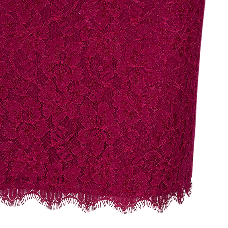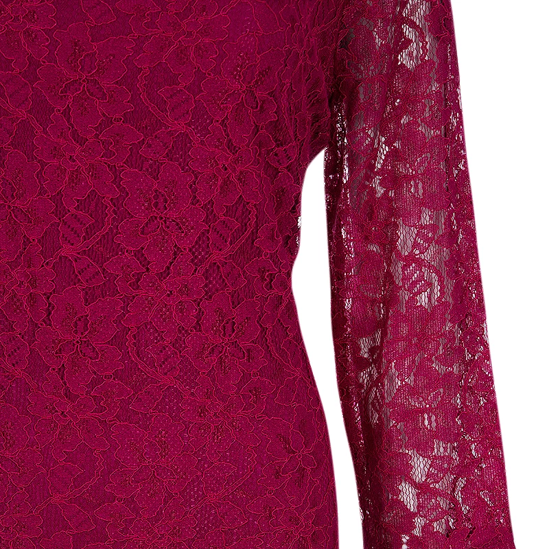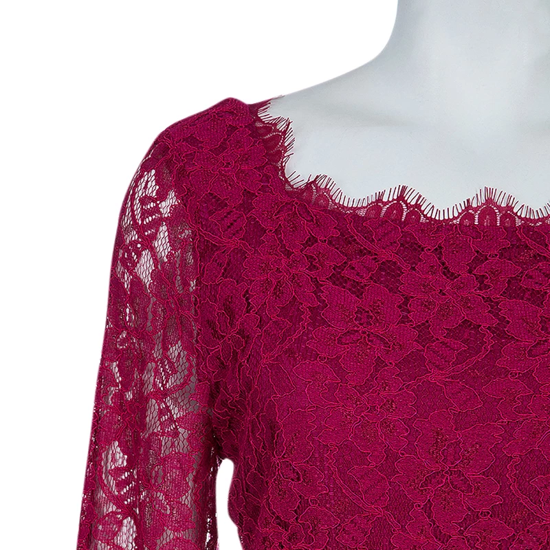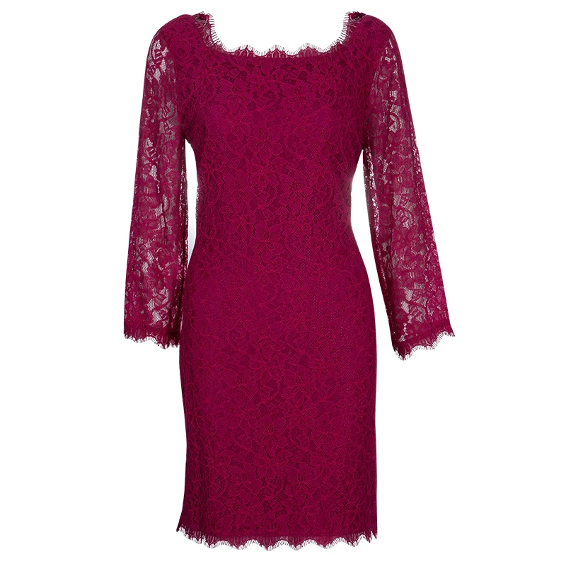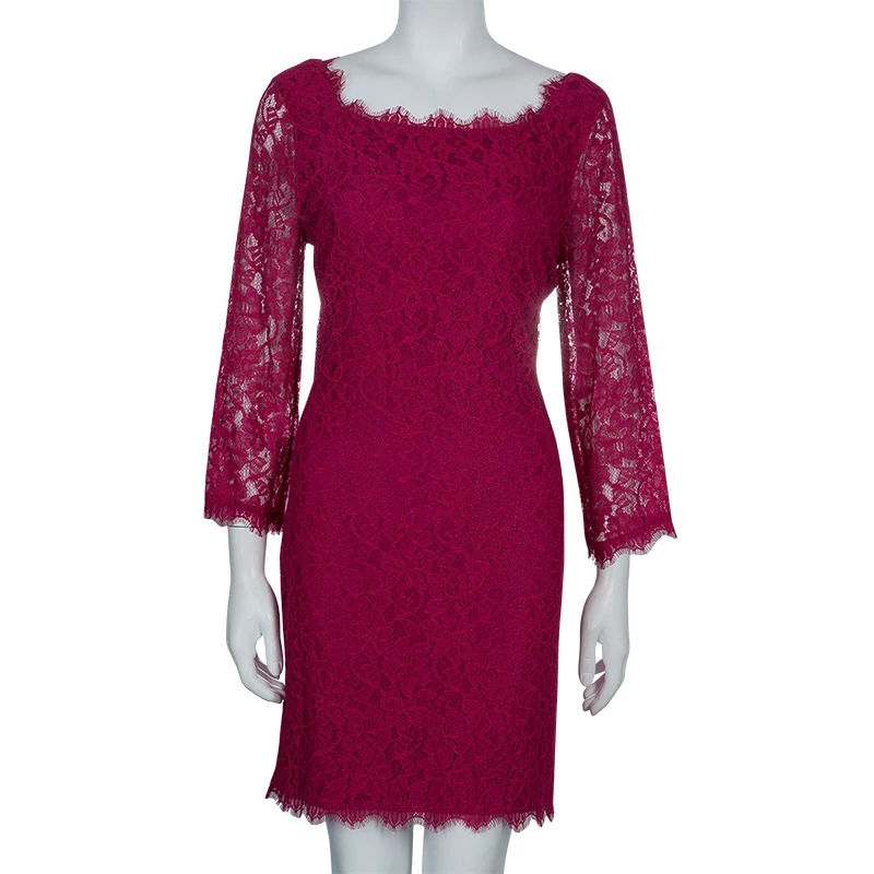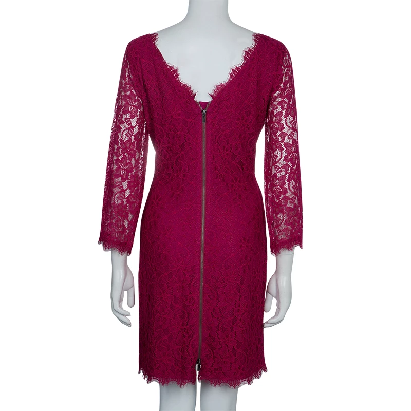 A little pink Zarita dress that will stun the room! This DVF dress is made from a blend of Rayon and Nylon lace. It has sheer-laced long sleeves, a round neckline finished with lace fringes and a zipped closure at the back.