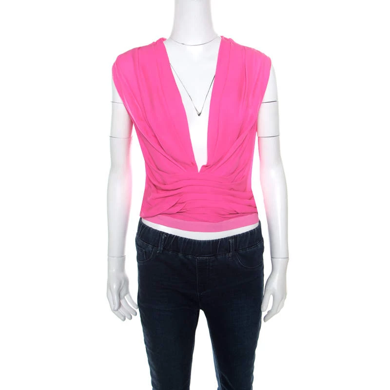 Coquettish and attractive, this candy pink-coloured Akahana top from Diane von Furstenberg is party-apt creation. Crafted from silk, it has a plunging neckline and backless rear. The pleated details to the front give the top both tactile and visual appeal.