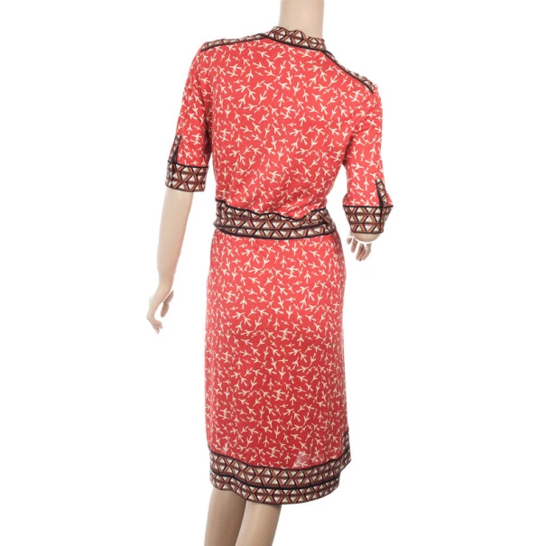 Grab this funky and chic Diane von Furstenberg “Lucinda” Red Airplane Print Silk Wrap Dress. It is entirely made from silk, it features airplane print that add a fun touch to a simple wrap dress. It also features a v-neckline and chest patch pockets.Original Retail Price: US $406