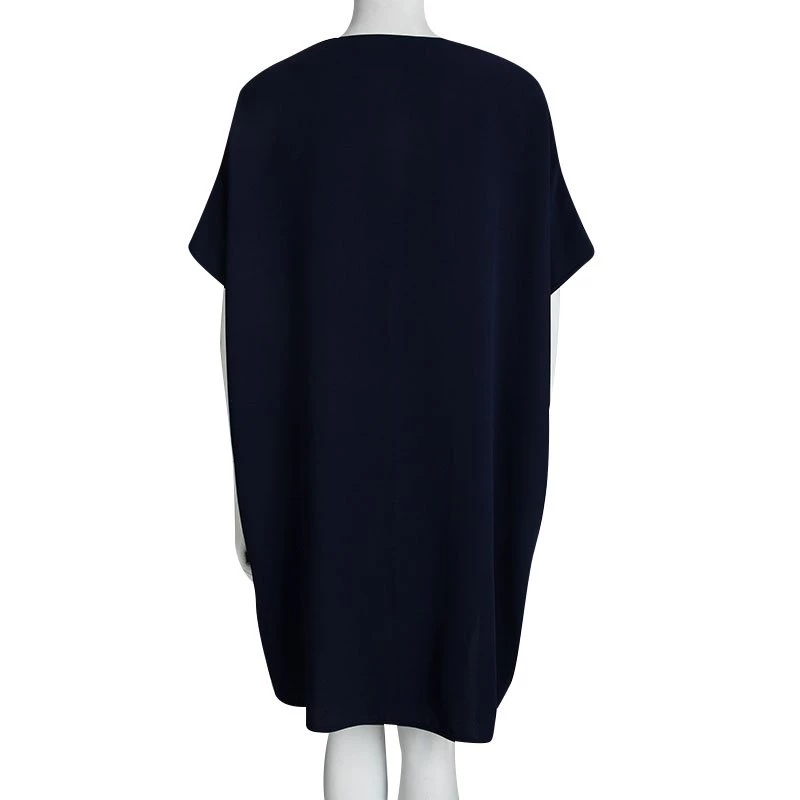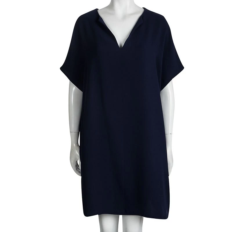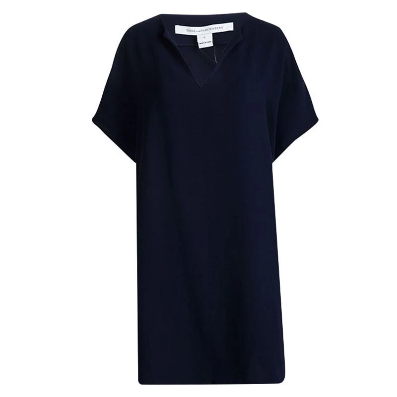 Made from a blend of triacetate and polyester, this Midnight Blue Kora Tunic Dress by Diane Von Furstenberg has been styled as a shift dress with batwing sleeves and a split neckline. Style this dress with thong sandals or better, couple it up with a gold waist belt and strappy stilettos for a high-fashion impression.