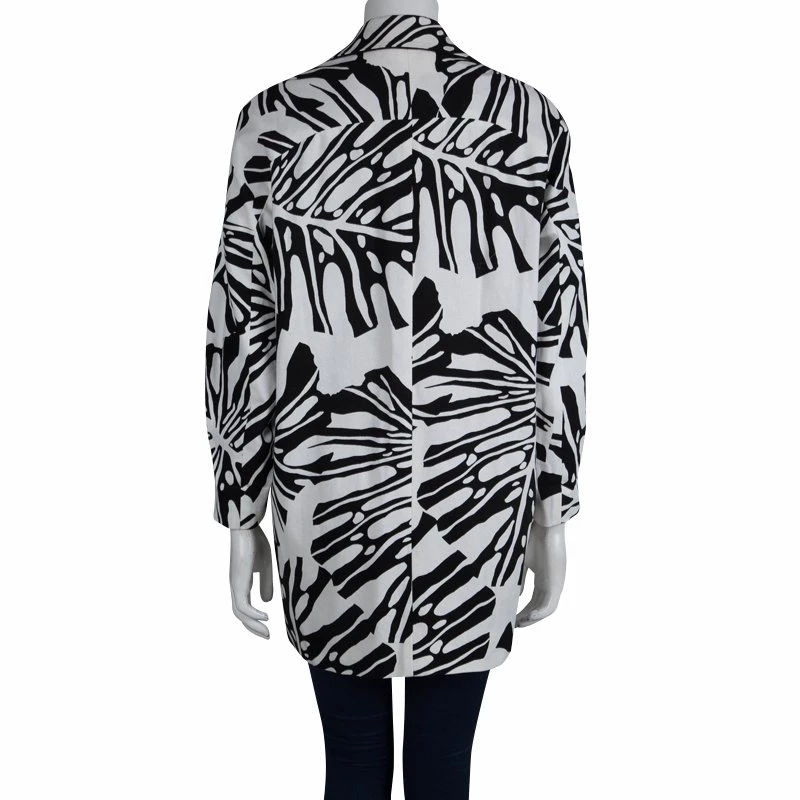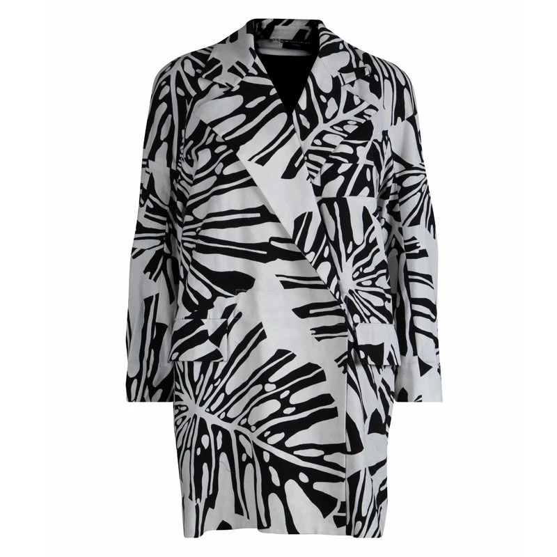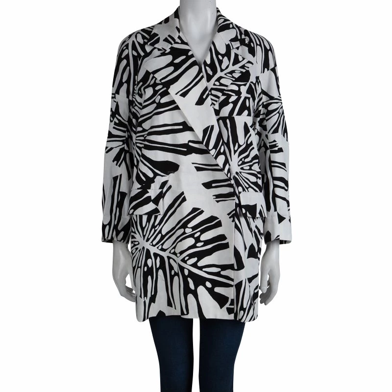 Adorned with monochrome leaf print, Diane Von Furstenberg โLaurelโ oversized blazer is high on fashion and style. In a cotton-canvas construction, it features a double-breasted front, a hidden press-down button fastening, large notch lapels and long sleeves. It has a chest pocket, two flapped front pockets and side pockets.