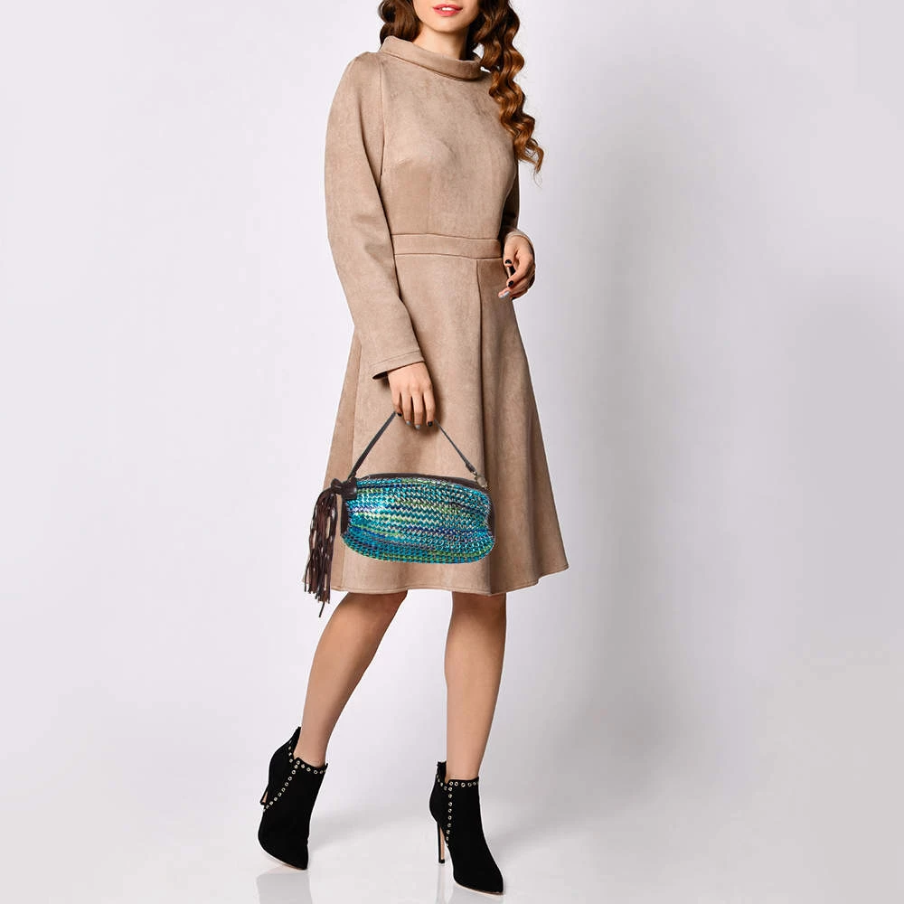 Luxury and elegance get personified with this brilliantly crafted Stephanie hobo from Diane Von Furstenberg. The bag is made from multicolored fabric and suede and comes with a single top handle. The zip-top closure opens to a fabric-lined interior that will hold all your necessities. This beautiful creation is complete with a tassel accent.