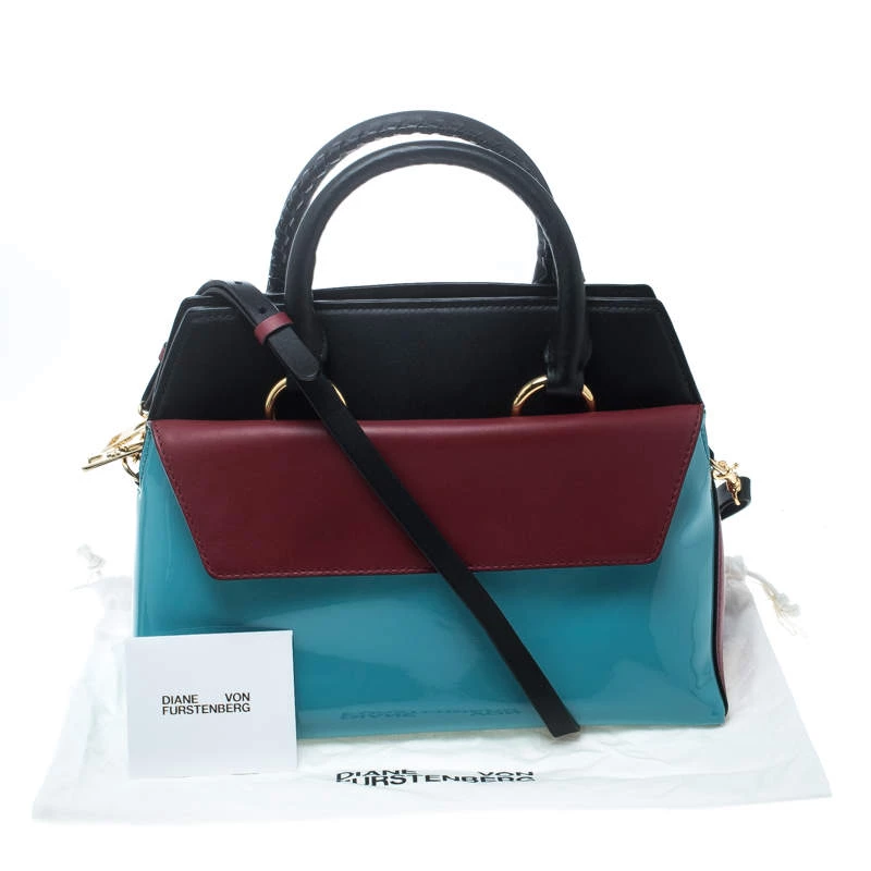 Durable and chic, this Diane Von Furstenberg satchel is perfect for everyday use. It features a multicoloured leather body detailed with a front flap pocket and a structured top. The zipper closure opens to a canvas-lined interior featuring spacious compartments. Complete with dual top handles and a shoulder strap, this bag profiles the brand logo on the rear accompanied by a slip pocket.