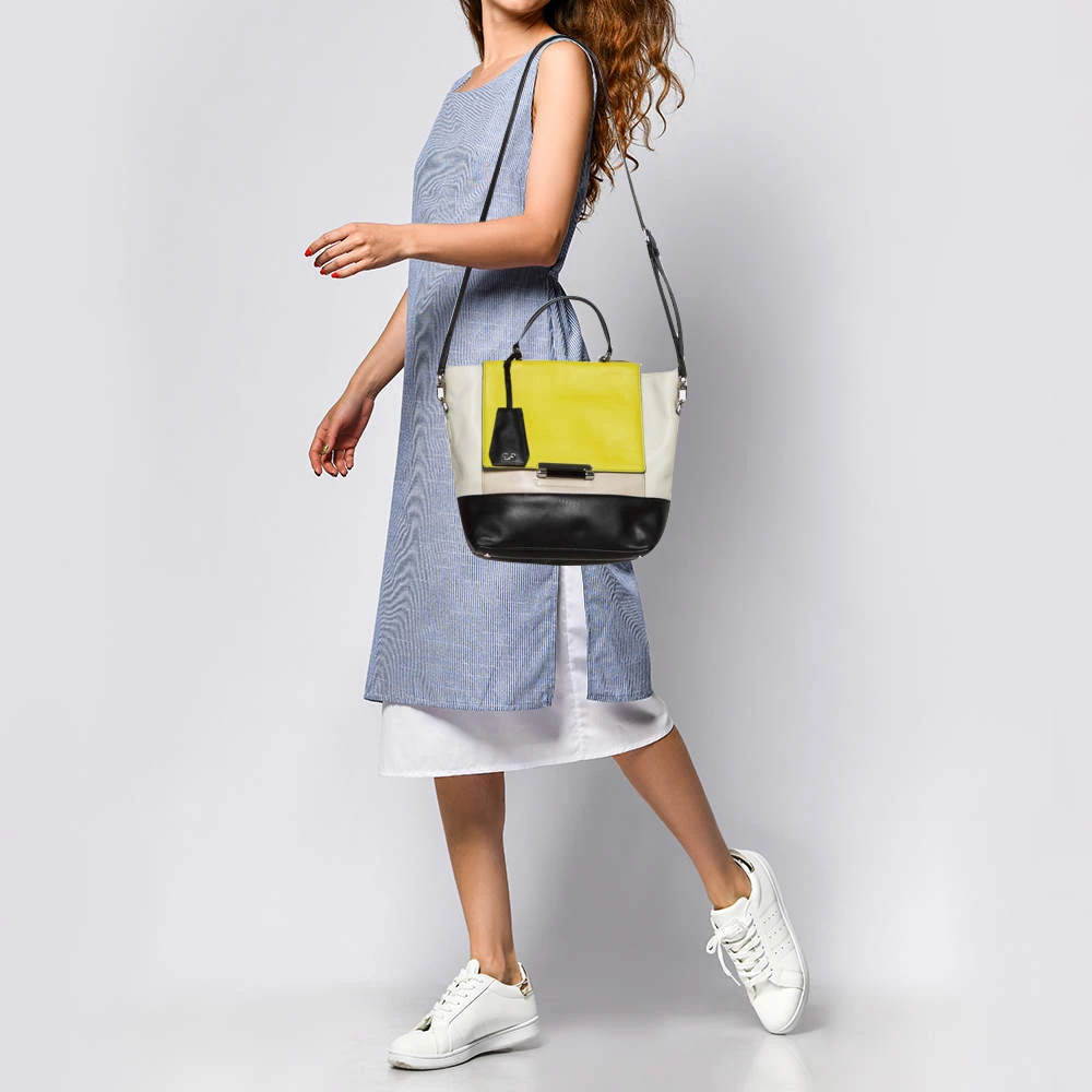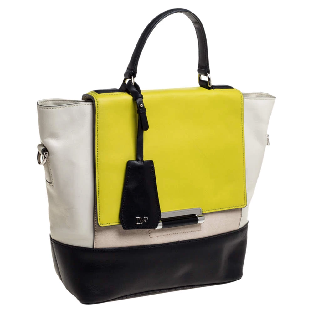 This bag from the house of Diane von Furstenberg is something you would go to season after season. It has been crafted from leather featuring multiple lovely hues and a front flap. It comes with a shoulder strap in addition to a flat top handle. It has a spacious interior that can easily hold your day to evening essentials.