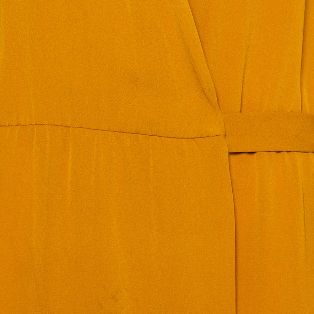 Beautiful to look at, this wrap dress from Diane Von Furstenberg will delight your fashion tastes. This dress is made of silk and designed with a mustard yellow hue. It also carries a V-neckline and wrap-around tie detail at the waist. Graceful and very modern, this dress can be flaunted with slingback sandals and a box clutch.