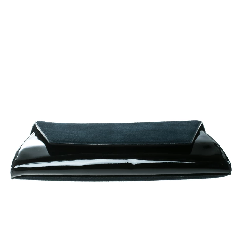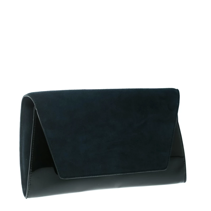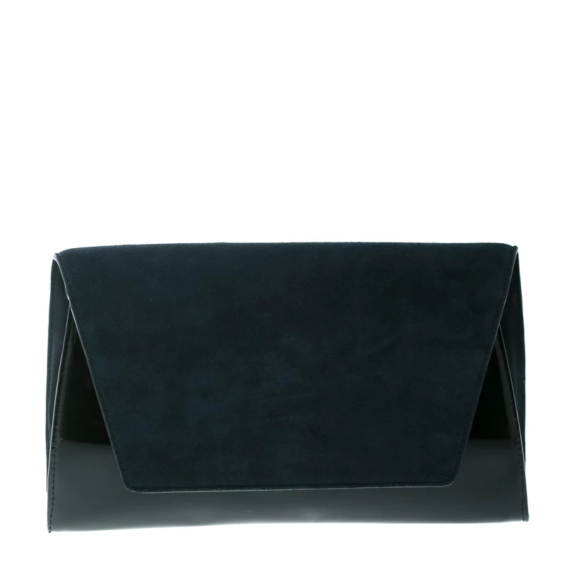 This Uptown clutch from Diane Von Furstenberg is chic, sophisticated and very stylish! The navy blue and black creation is crafted from suede and patent leather and features a front flap closure. It opens to a leather and satin lined interior that houses a zip pocket, multiple card slots, and open compartments. It is sure to lighten up your outfits with its timeless appeal!