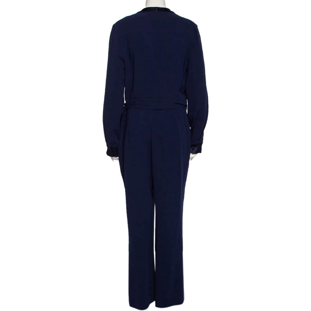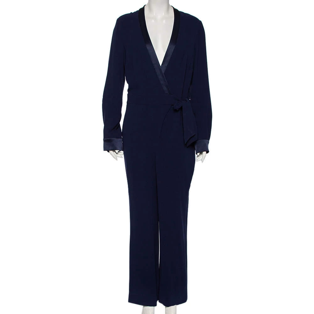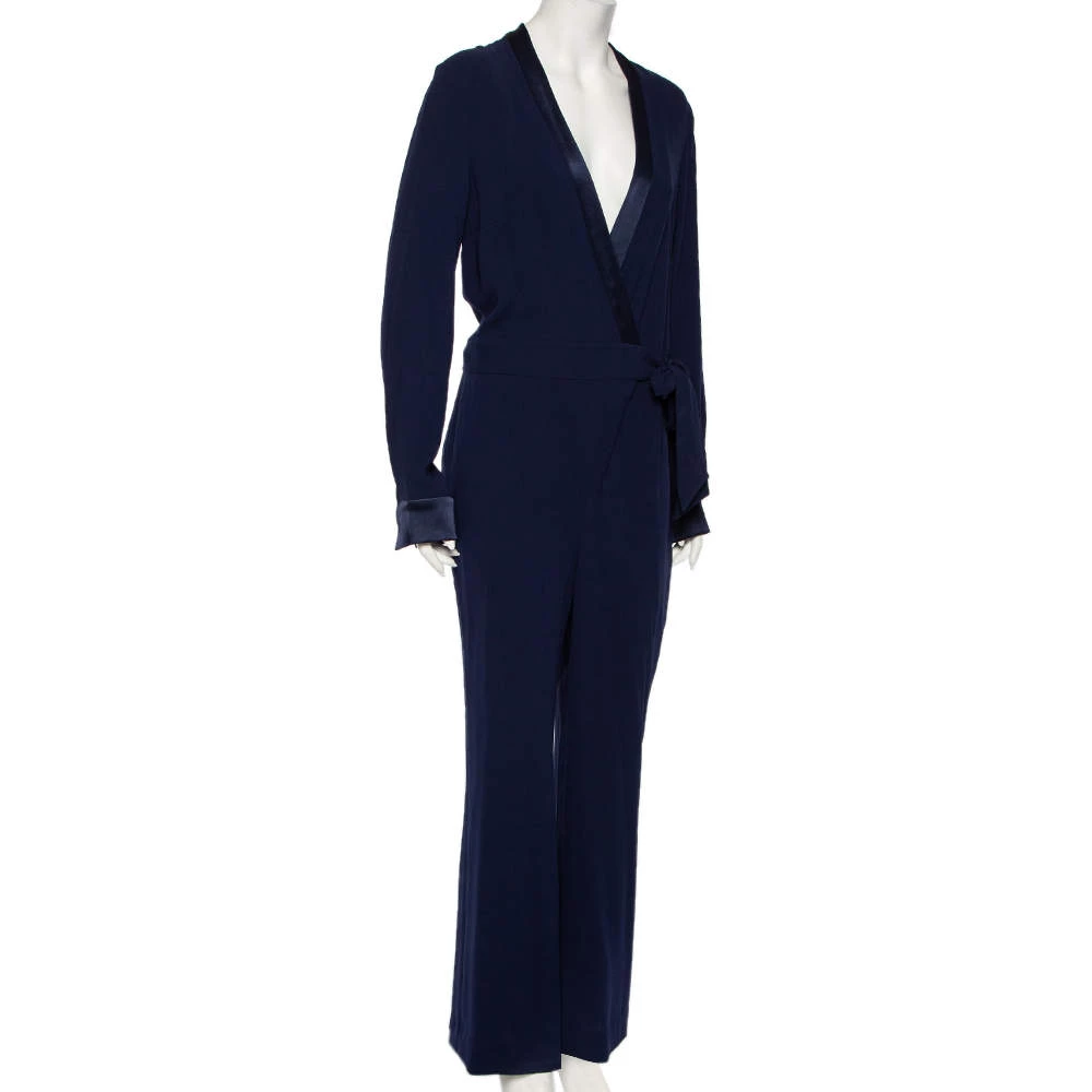 This elegant wrap jumpsuit by Diane von Furstenberg is a graceful style statement in navy blue. Its delightful color and tasteful demeanor make it so covetable. Wear this DVF Margot jumpsuit to create a chic avatar for a special occasion.