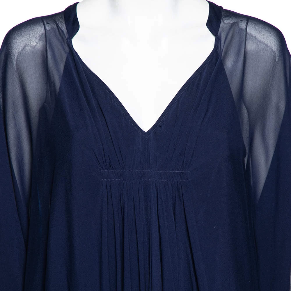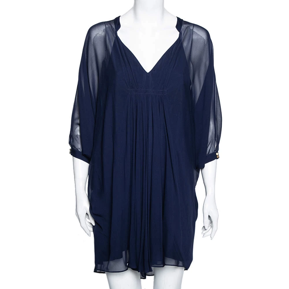 For those relaxed dinner outings, you can flaunt this mesmerizing navy blue mini dress. Designed by Diane Von Furstenberg, it has flattering pleated details on the front and comes with dolman sleeves that lend an effortlessly chic vibe.