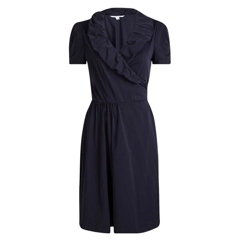 Diane Von Furstenberg’s designs are a celebration of elegance and style. This Bethania dress by DVF has been made from polyamide and elastane, and styled as a wrap dress with a fastening at the back. The dress features a stylish ruffled neckline and short sleeves. Assemble the complete look with statement sandals and a dazzling flap bag.
