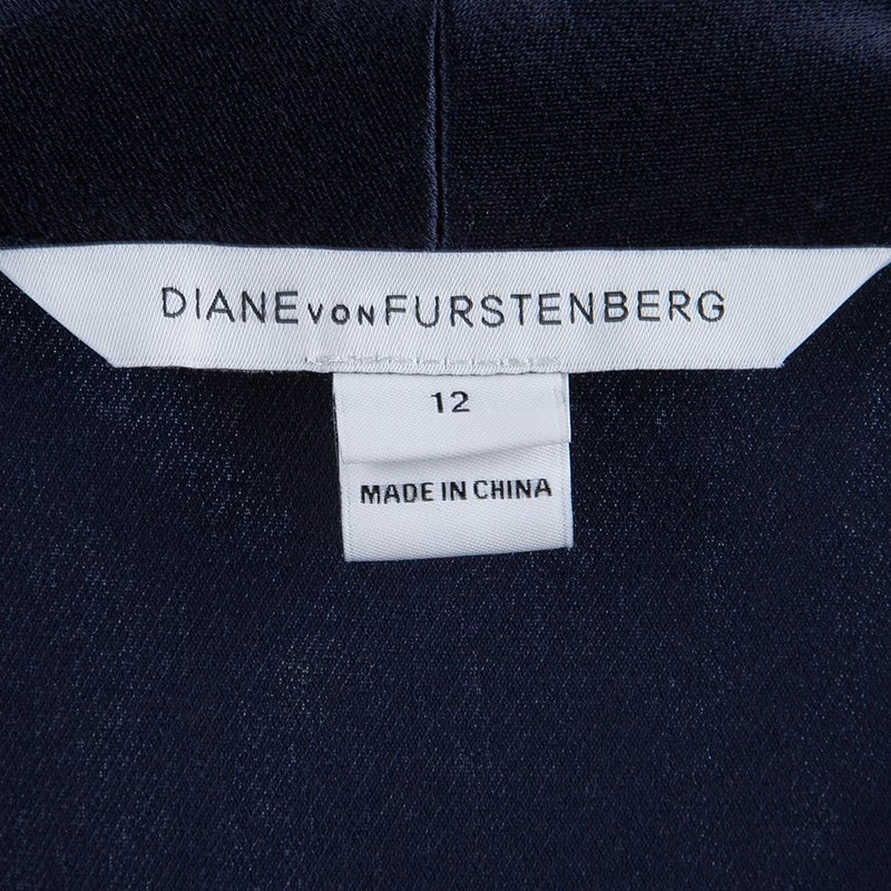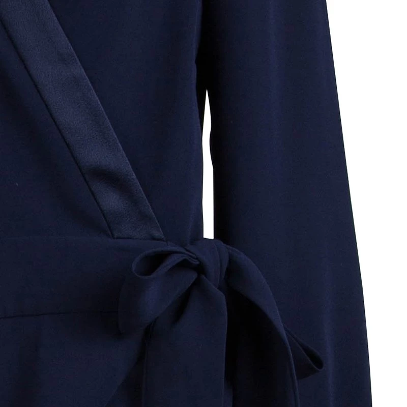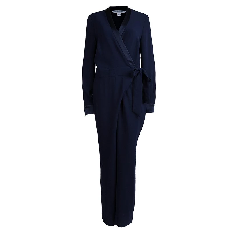 This elegant wrap jumpsuit by Diane von Furstenberg is a graceful style statement in navy blue. Its delightful colour and tasteful demeanour makes it eye candy. Wear this DVF star jumpsuit to create a sexy avatar for an exclusive occasion.