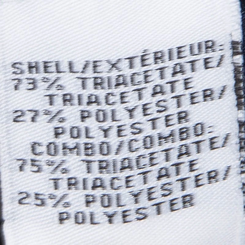- Fabric: Main : 73% Triacetate , 27% Polyester ; Trim : 75% Triacetate , 25% Polyester