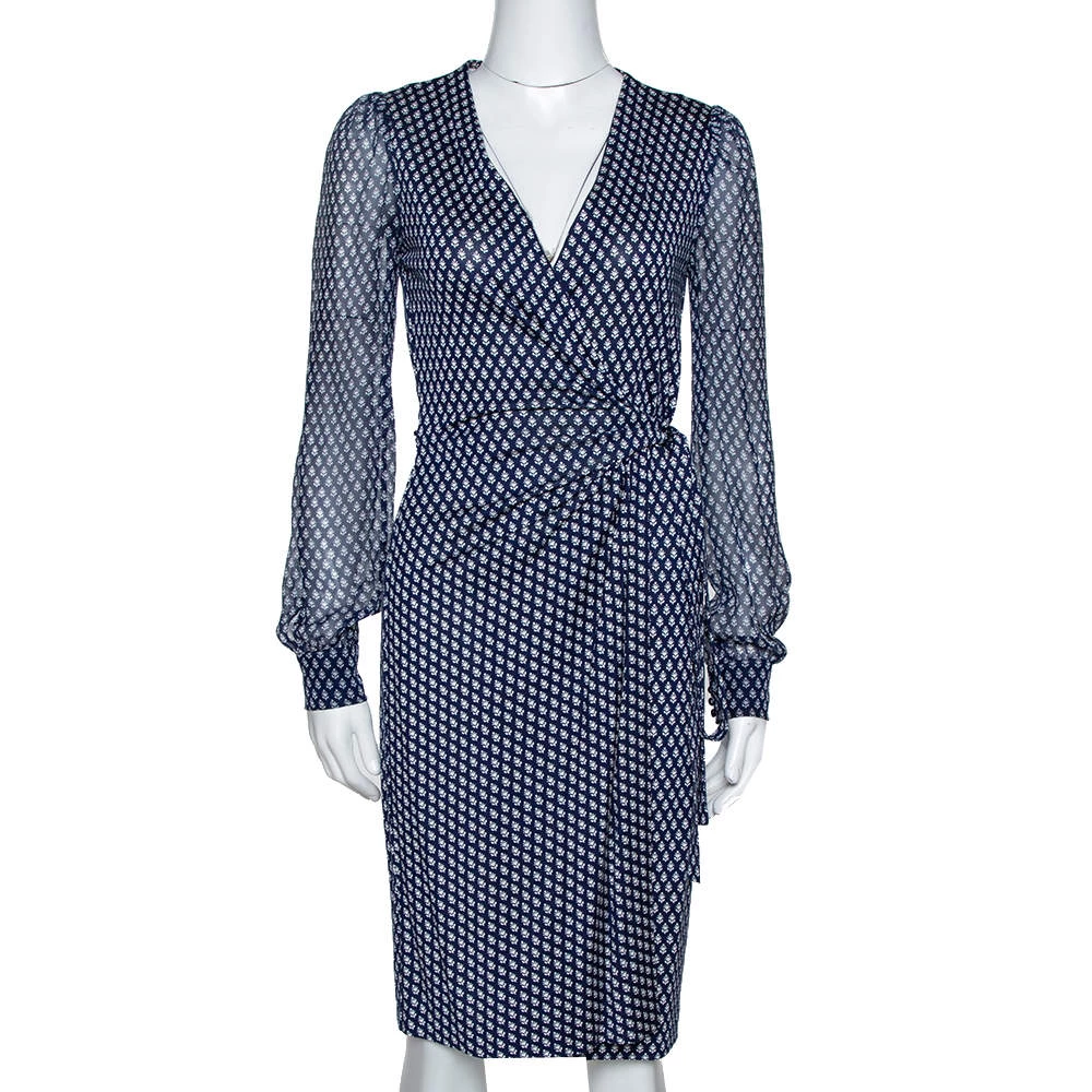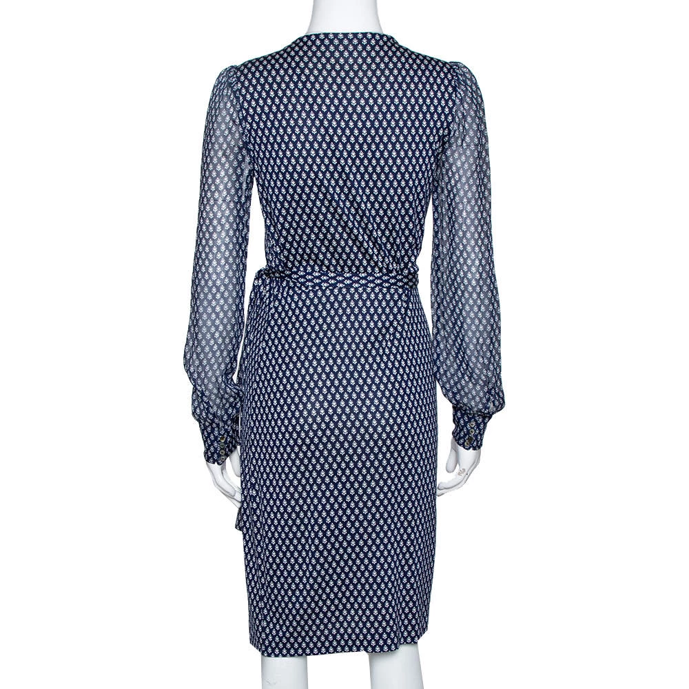 Beautiful to look at, this Sigourney wrap dress from Diane von Furstenberg is best suited for a fashionable outing. This dress is made of quality fabrics and features prints all over. It also carries a deep V-neckline and a tie detail at the waist. Graceful and very modern, this dress can be flaunted with strappy sandals and a dazzling clutch.