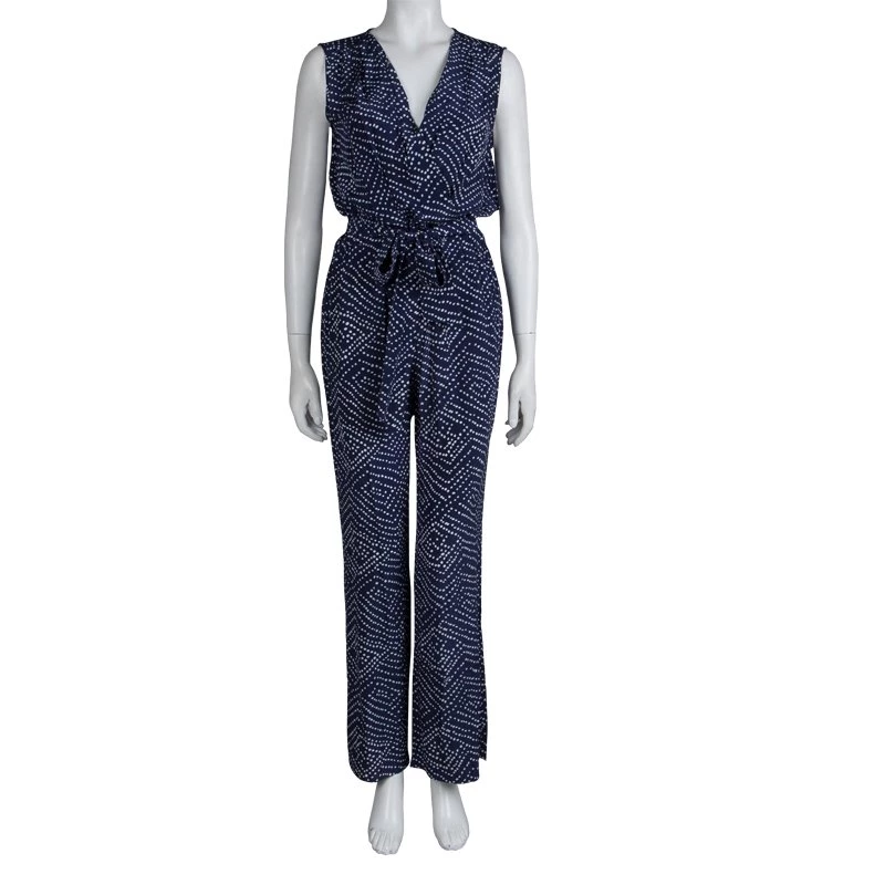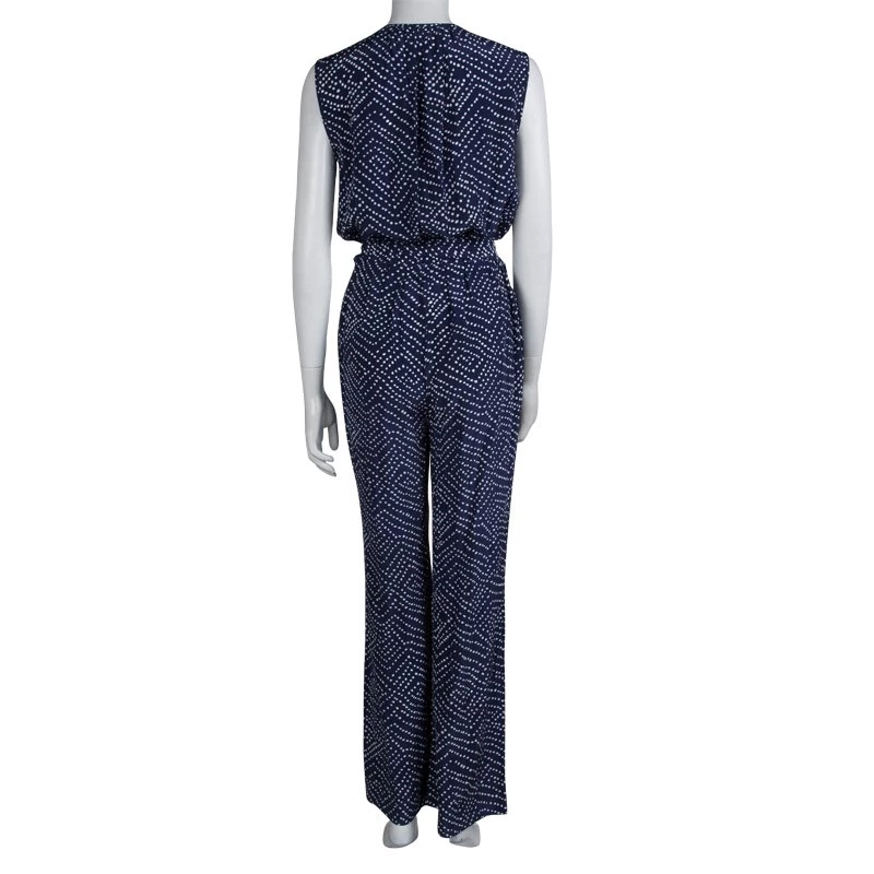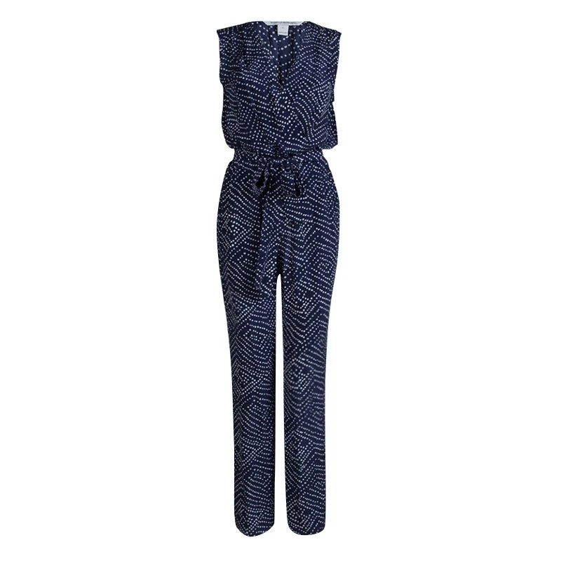 A comfortable design from Diane von Furstenberg, this piece features a white printed pattern and a relaxed structure. A sleeveless piece, it has a ‘V’ neck and a belt cinches at the waist. Tied in a bow, it gives the piece a feminine flair.