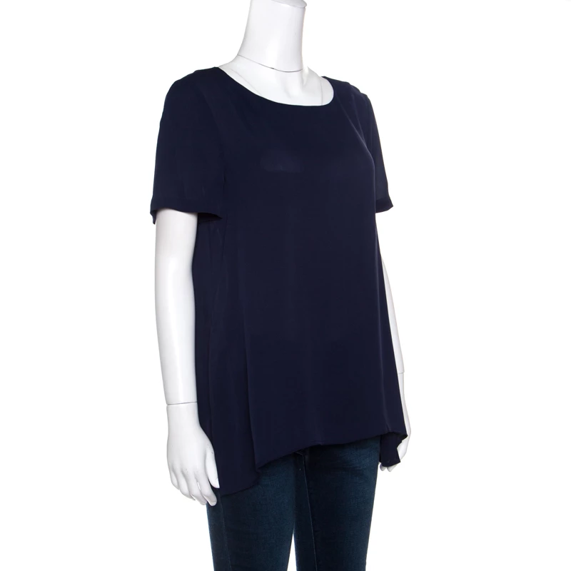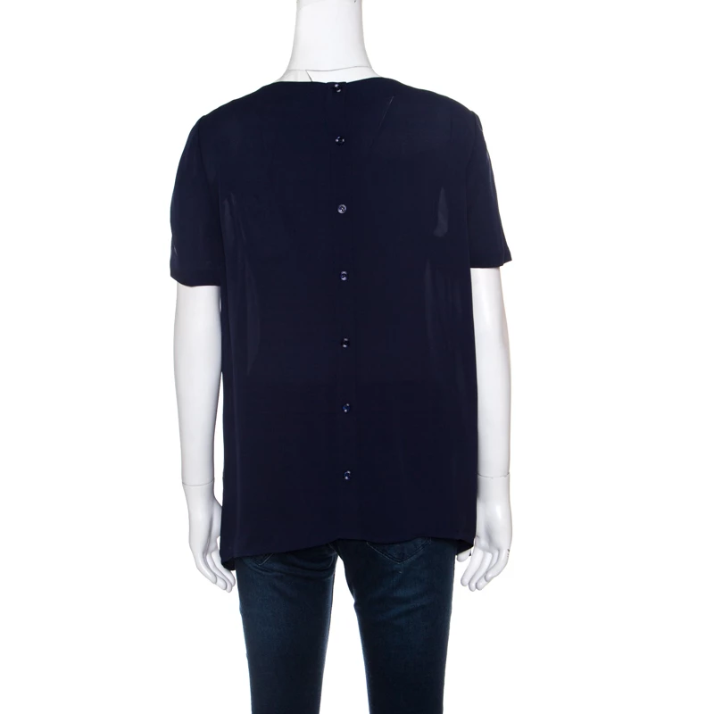 The eponymous label Diane Von Furstenberg brings to you this lovely Maggy top for all your fun-filled outings. The navy blue top is made of 100% silk and features a simple structured silhouette. It flaunts a round neckline, short sleeves and button fastenings at the back. It can be perfectly paired with denim or trousers.