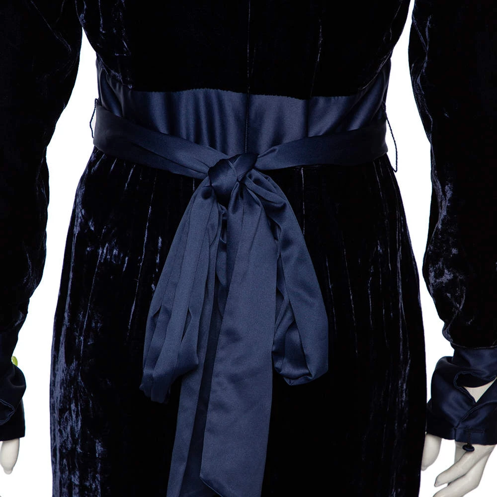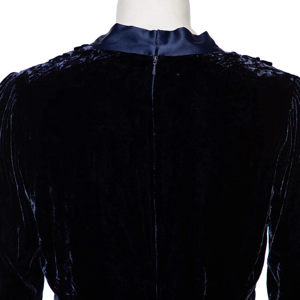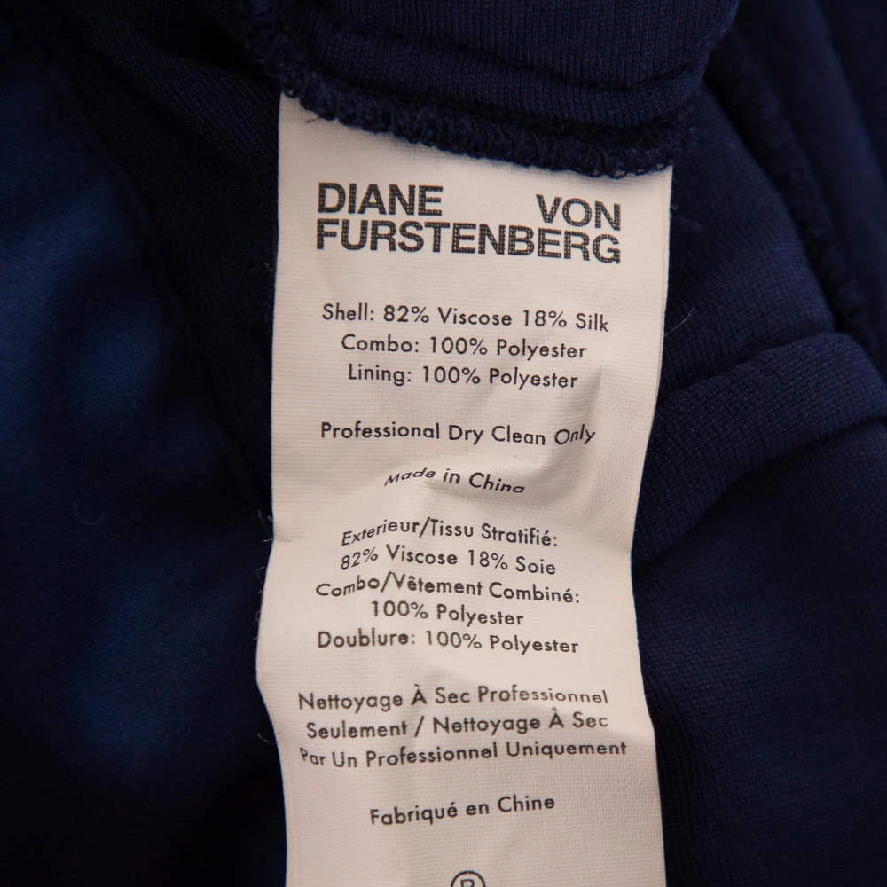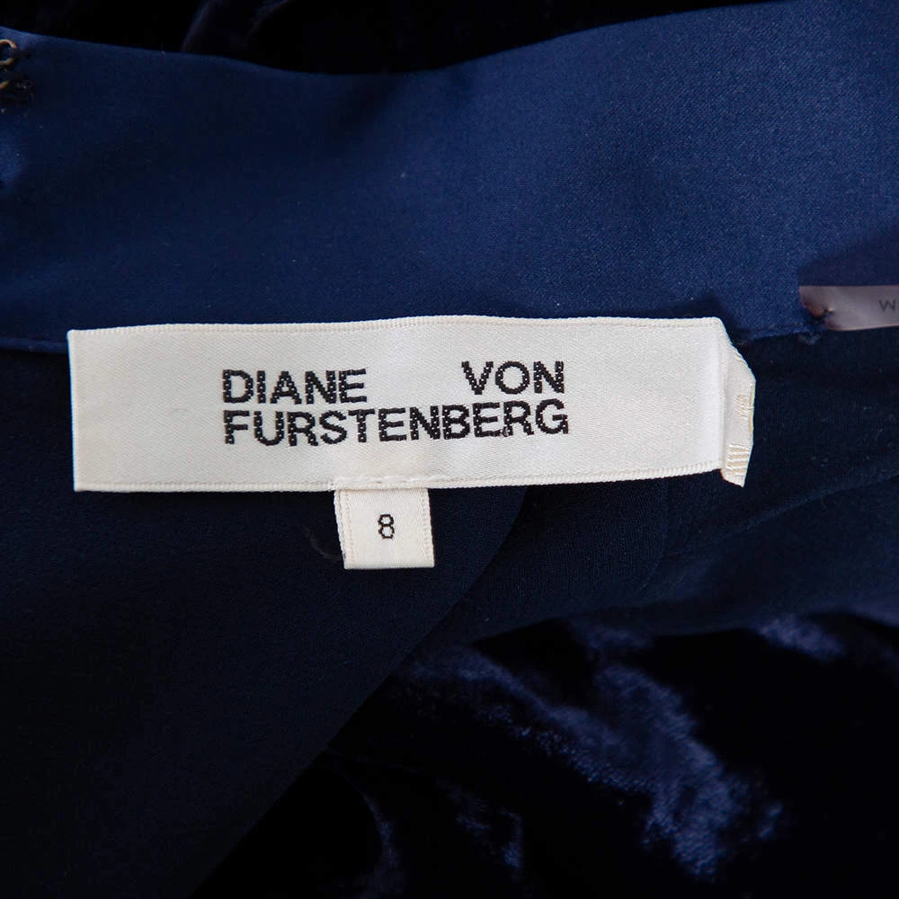 This Diane Von Furstenberg jumpsuit will equip you to deliver elegant and fashionable looks. Crafted from plush velvet, this luxurious creation comes in navy blue and flaunts satin trims. It has long sleeves & a v-neckline that is flattering. It comes with long pants and has a tailored fit.