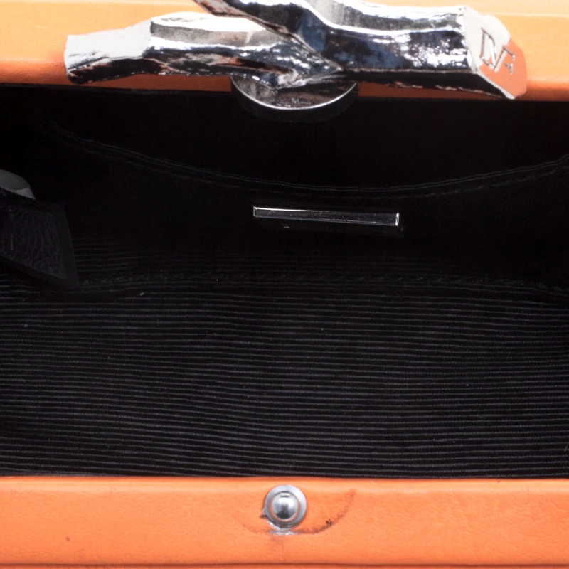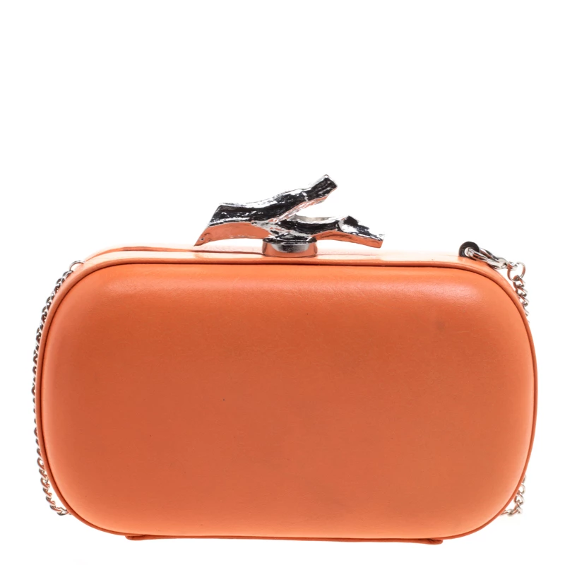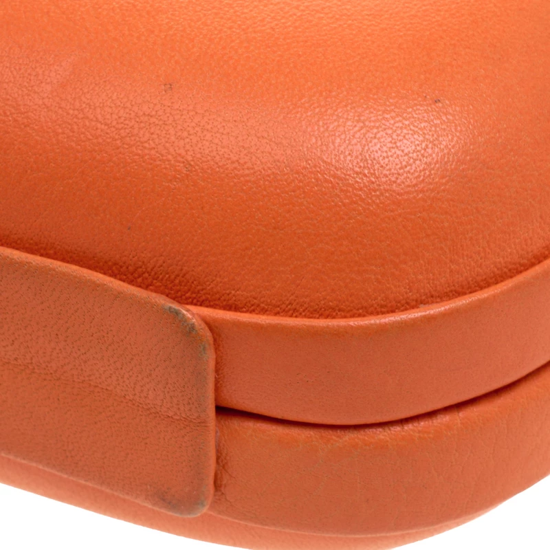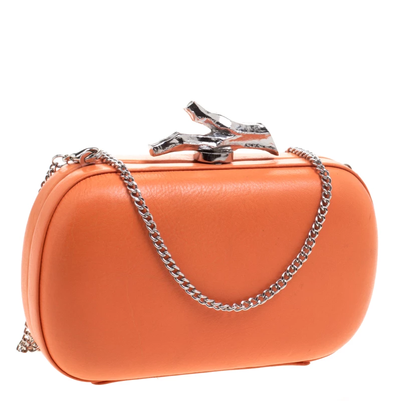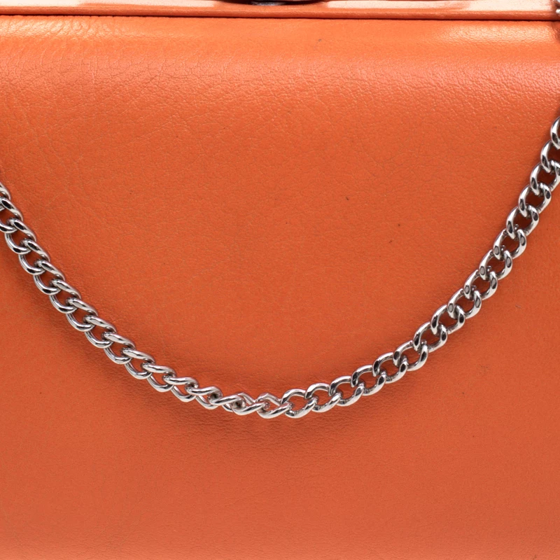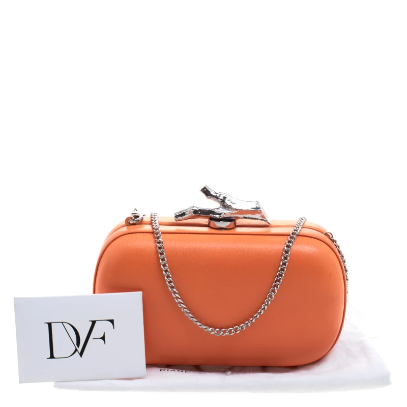 Crafted from leather, this Diane Von Furstenberg clutch has a style that will catch glances from a mile. It has been designed with a kiss lock that reveals a fabric interior and it is held by a chain. The breathtaking orange hue that covers its expanse further adds to its glory and makes it a worthy buy.