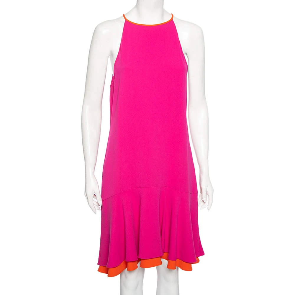 Styles coming from Diane von Furstenberg adorn you with chic femininity and unique creativity. This dress is skillfully stitched using pink and orange crepe fabric and comes with a halter neck. Appear nothing but pretty and poised as you wear this dress.