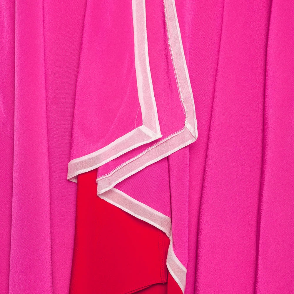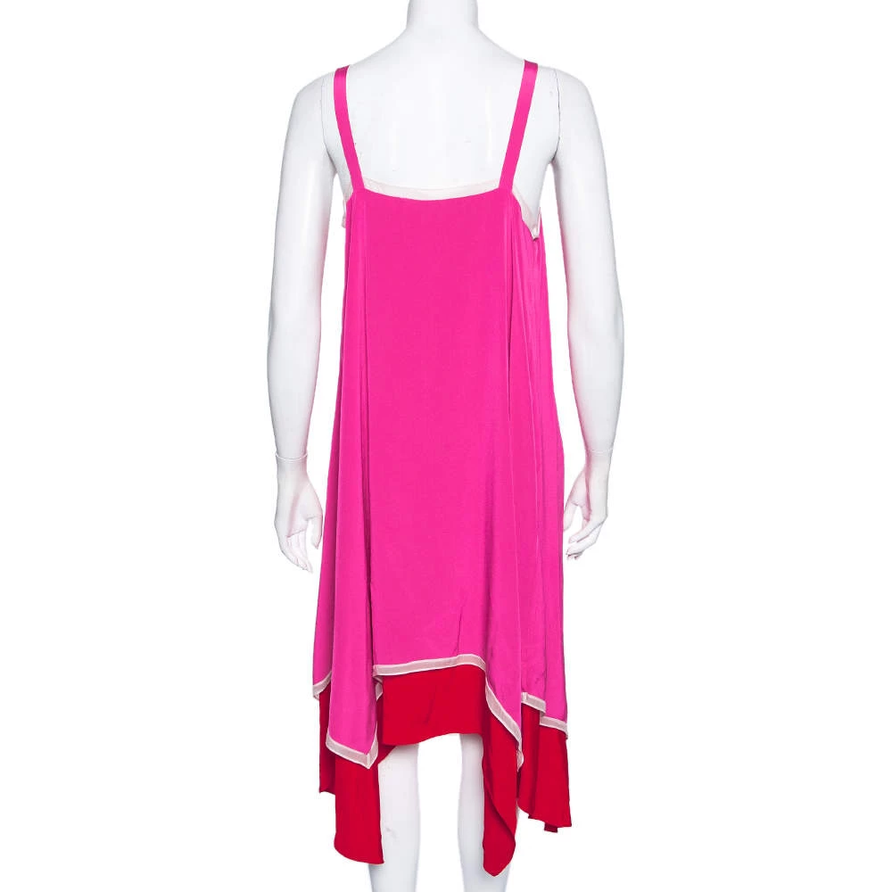 Make a unique style statement when you go out wearing this fashionable Diane Von Furstenberg dress. This stunning pink dress has an asymmetric hem and a sleeveless silhouette. Celebrate the season with an impressive dress like this silk one.