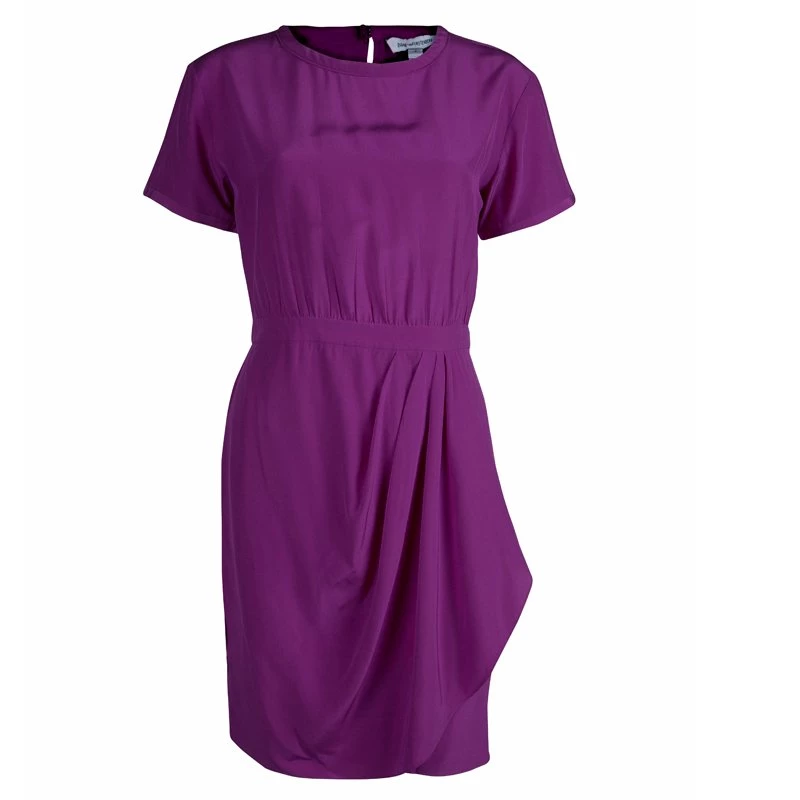 Amplifying the label’s unconventional cutting with draping detail at front, this Eryn dress by Diane Von Furstenberg is an easy-to-wear piece with sophisticated flair. Made from 100% silk in vibrant pink hue, this short-sleeve silhouette is fashioned with a round neck, cinched waist, and concealed zipper on the side.