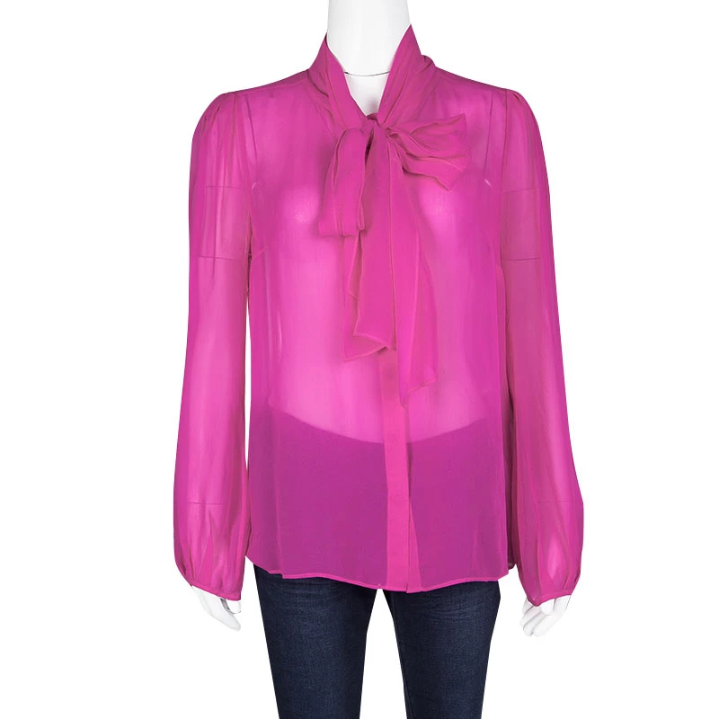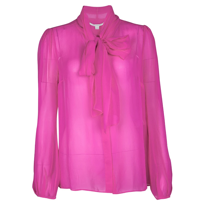 Wear it to work or add a pop of colour to your smart and formal looks with this gorgeous Diane Von Furstenberg link Jezebel blouse. Constructed in pink silk, this blouse features slightly voluminous long sleeves and a sleek and chic tie detail at the neckline. With a front concealed button down placket, this blouse is easy to wear and easy to style.