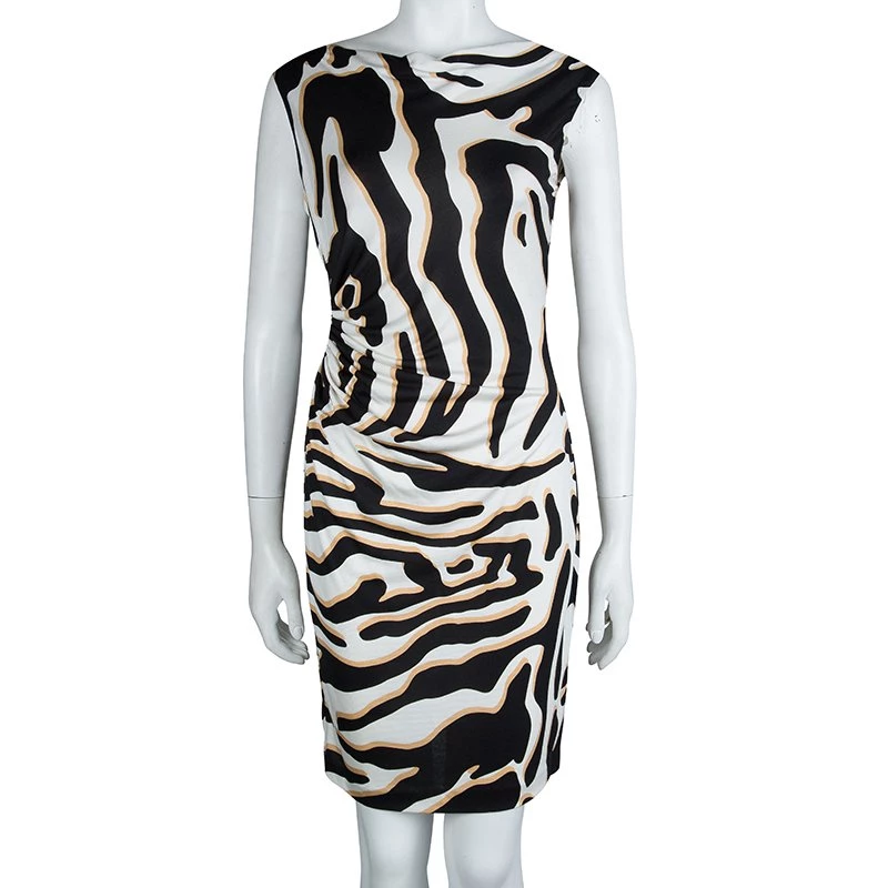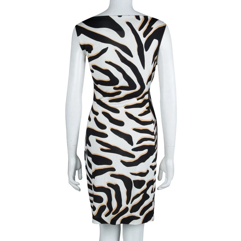This sleeveless Glasmary dress by Diane Von Furstenberg is cleverly designed with animal print details and a boat shaped neckline. Team this ruched silk dress with simple black pumps for a sleek finish.