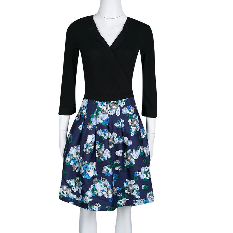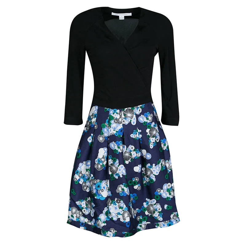 Beautiful to look at, this wrap dress from Diane Von Furstenberg has been created to suit your fashionable taste. The top of the dress is in a mono shade while the skirt is designed with prints. It features long sleeves, pleats on the skirt and a tie at the waist. Graceful and very modern, this dress can be flaunted with strappy sandals and a Classic Flap bag.
