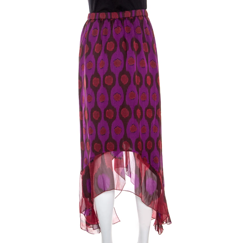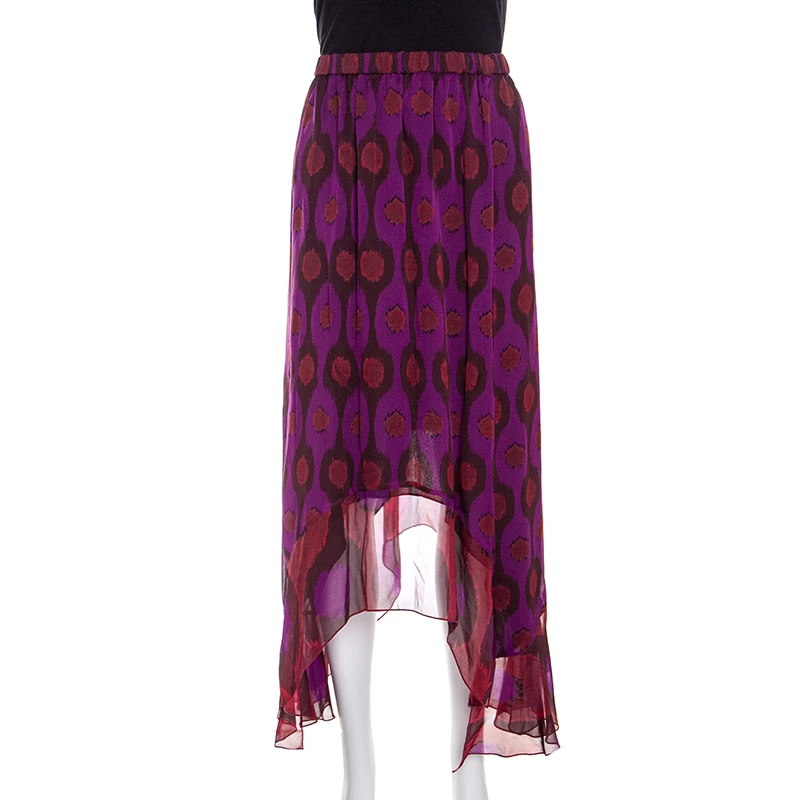 This pretty purple skirt can change your old look and refresh your style quotient. Add elegance and grace by wearing this gorgeous piece tailored in silk. This stately piece from Diane Von Furstenberg has an asymmetric hem and will look great with a bodycon top and heels.