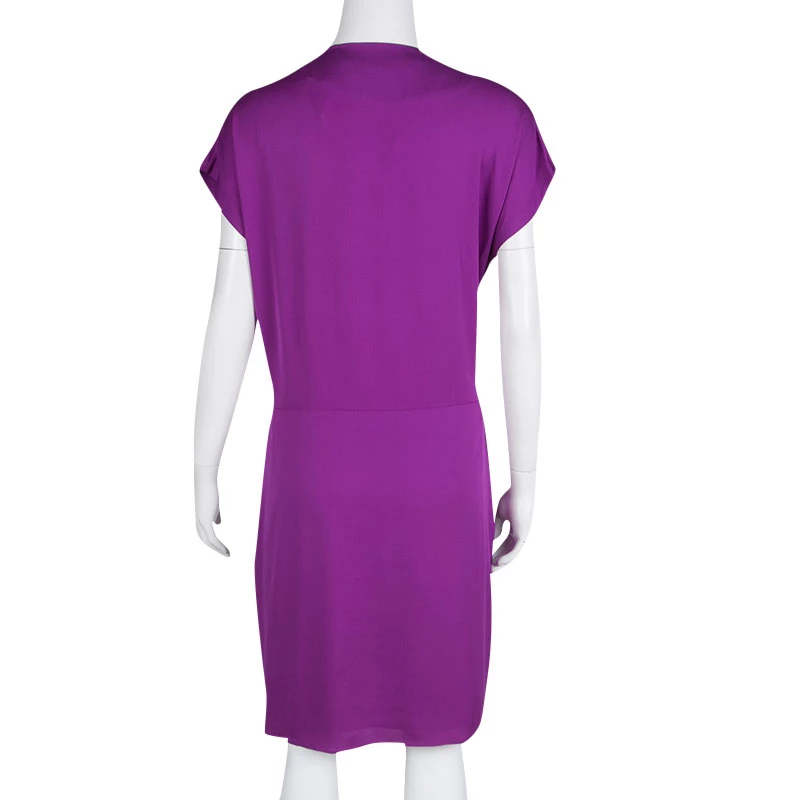 DVF dresses are known for their comfortable silhouette and stylish details. Fashioned in a drape style, this Balisi dress profiles a knot detail accentuating the slightly gathered waistline. The outfit flaunts an eye-popping purple color that instantly gratifies your playful fashion sense. Crafted with a silk blend, team this with funky footwear for a dynamic look.