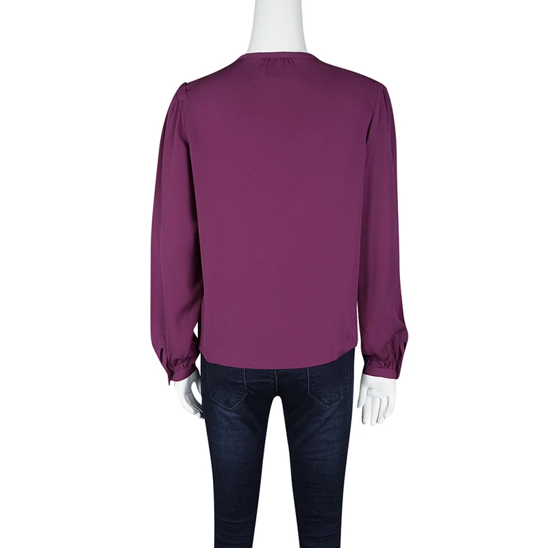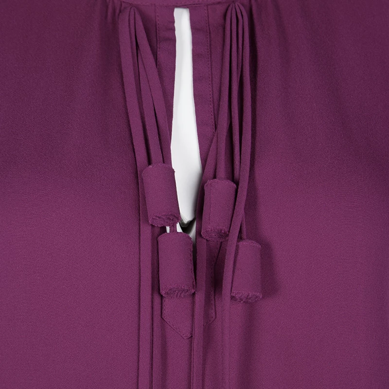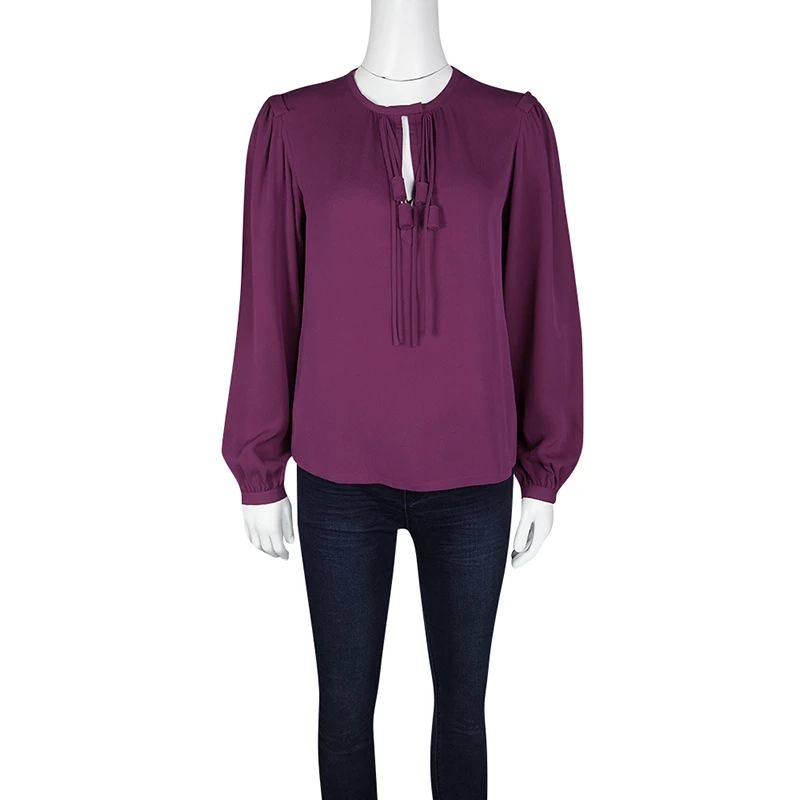 Diane Von Furstenberg delights us with this lovely purple blouse that has been tailored from silk and styled with long sleeves and tassel detailing at the front. This creation will look great with trousers and high heels.
