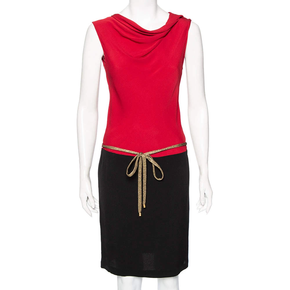 Look spectacular as you don this Crista dress from Diane von Furstenberg. Tailored using red-black silk with a detachable tie-detail on the waistline, this dress lends a contrasting appearance to your attire. Complement this dress by matching it with black pumps.