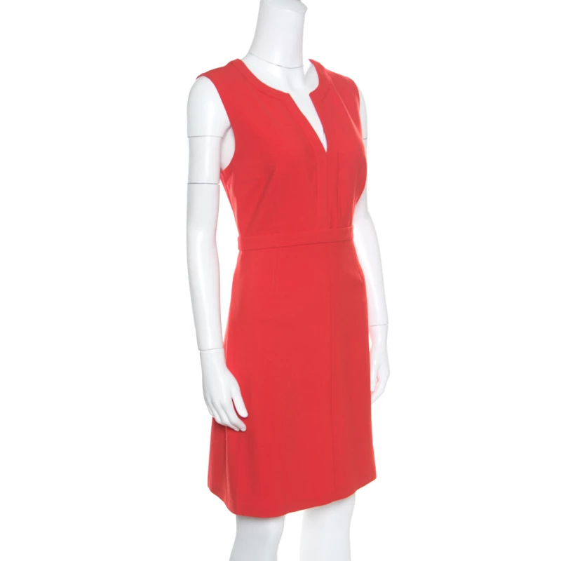 This Diane Von Furstenberg sheath dress is a kind of dress that makes you feel pretty and feminine, always. The outfit, which is perfect from all angles, features a pretty red hue that makes your eyes pop out. Falling to a short length, this well-structured piece is completed with a V-neckline and a sleeveless design. Wear this with vibrant pumps for a breezy look.