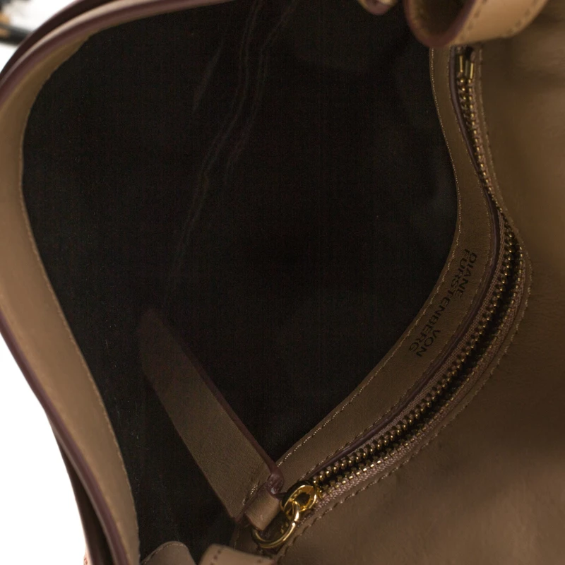 This Diane Von Furstenberg bag will come in handy for your style and for your daily use. It is made from red leather and it has a satin compartment secured by a flap and a shoulder strap.