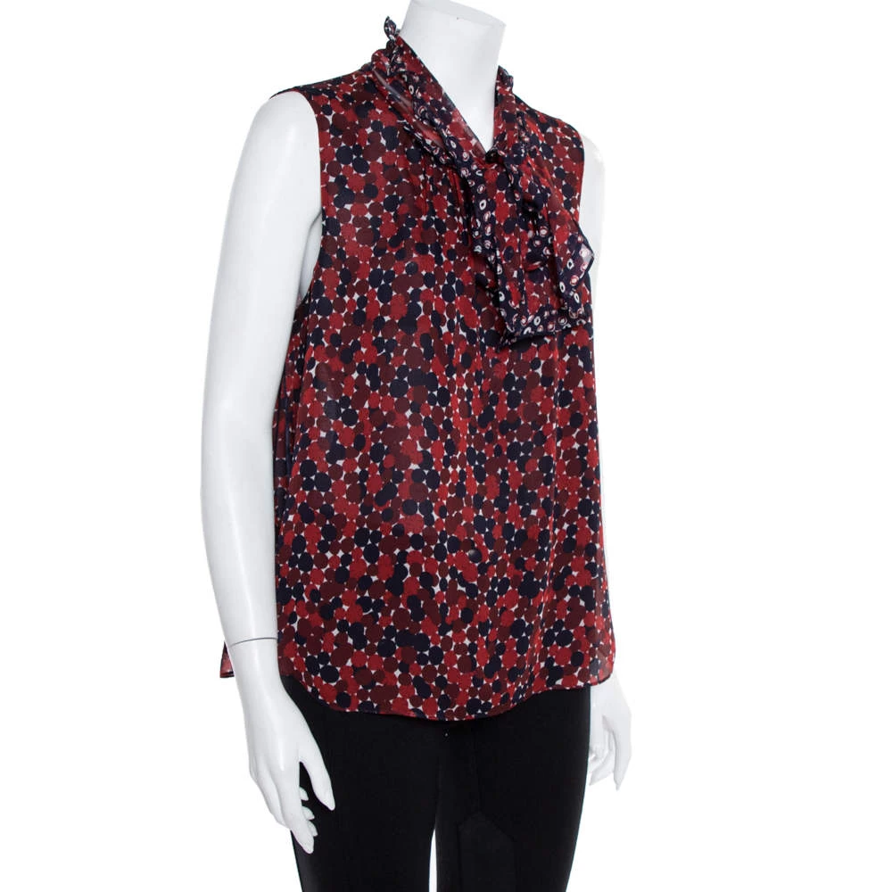 Comfortable and chic, Diane von Furstenberg’s top made from silk has a signature appeal! Tailored beautifully, the sleeveless top has a neck tie detail and prints all over. Team it atop denim or with high-waist pants and skirts.