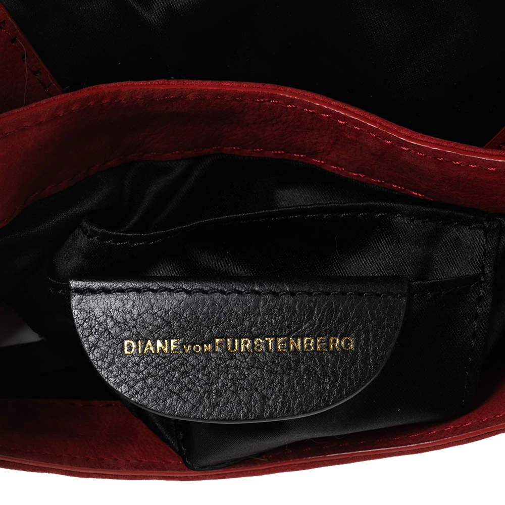 This Bullseye crossbody bag from Diane von Furstenberg is a beautiful creation. It is made from red Nubuck leather and features gold-toned hardware. It has a 60 cm shoulder strap. Match it with your attire and look nothing but chic.