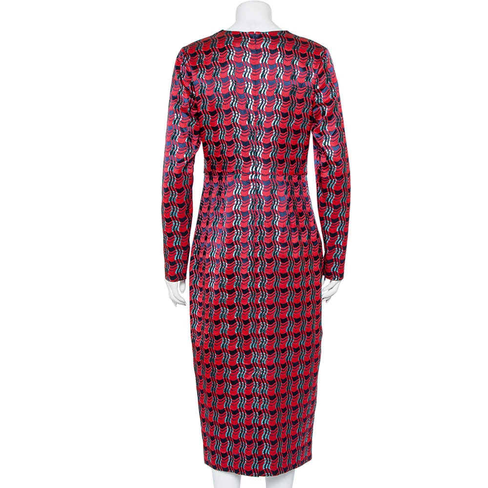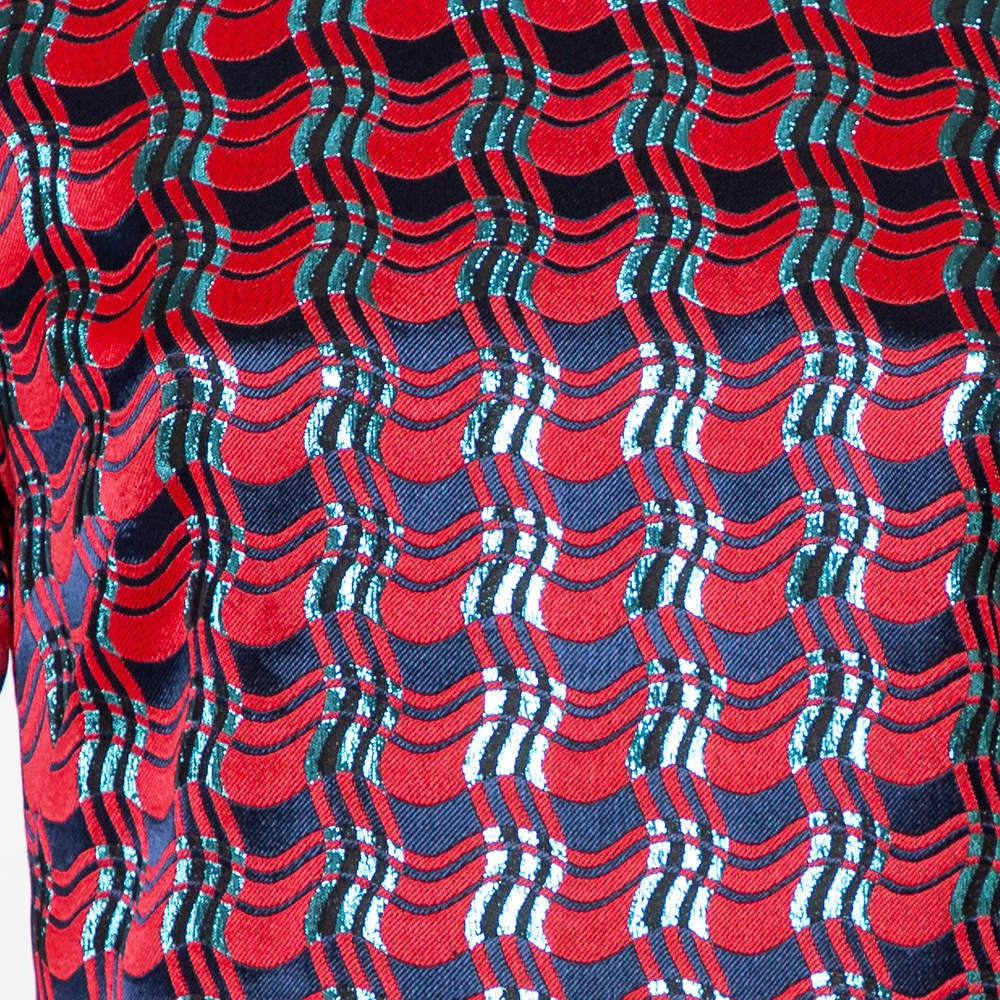 An effortless pick that will have you out of the door within minutes. This Diane Von Furstenberg maxi dress is crafted from lamé fabric that carries a pattern throughout. The red hue and the silhouette add to the elegant look that is perfect for special occasions.