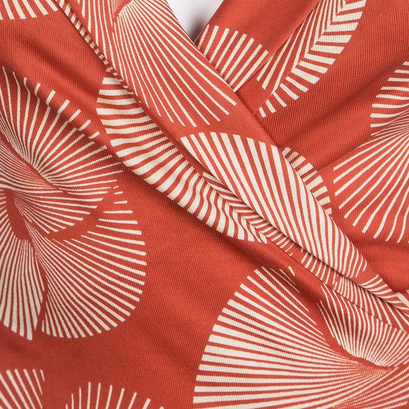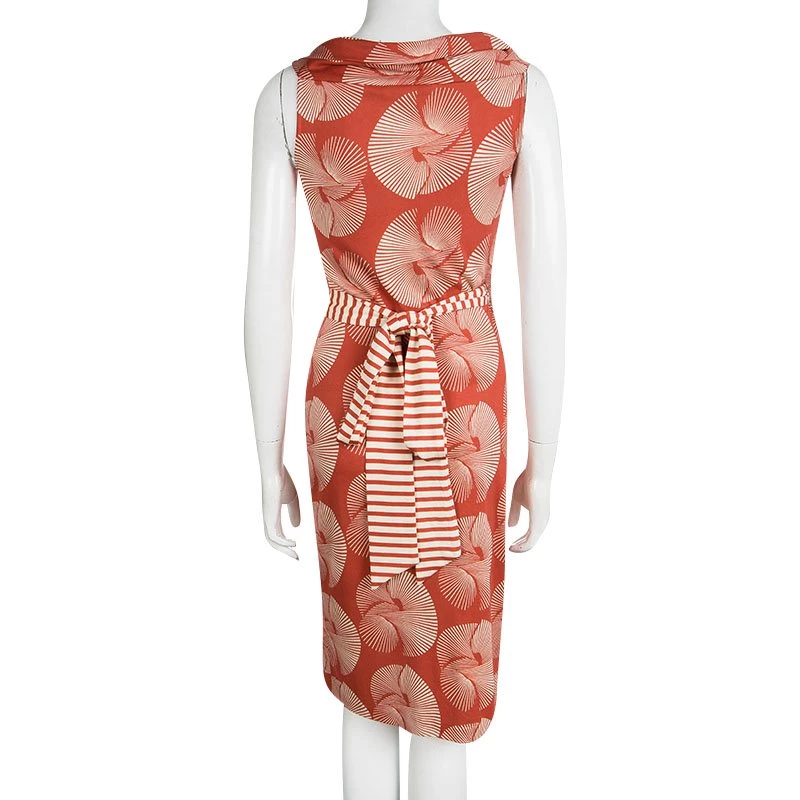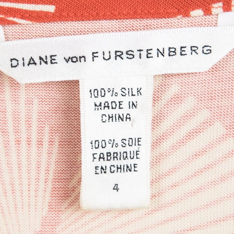 This Diane Von Furstenberg silk Fariba wrap dress is constructed in red colour with abstract print all over the dress. This knee length wrap dress features a red and white striped waist tie that ties at the back to cinch in your waist for a perfectly shaped silhouette to exude a feminine and graceful vibe.